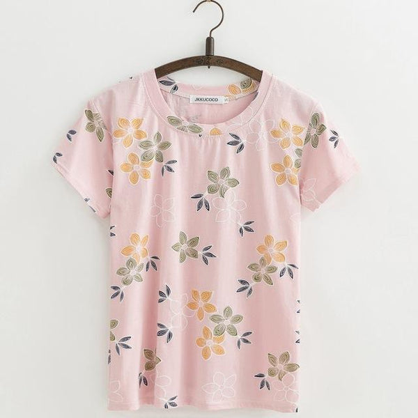 Shabby Chic Floral Printed All Over Short Sleeve Women'sTee T-Shirt Top, Color - J407