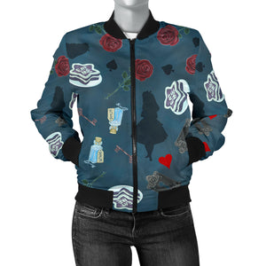 Sports Varsity Style Bomber Jacket Women (C1) Alice In Wonderland