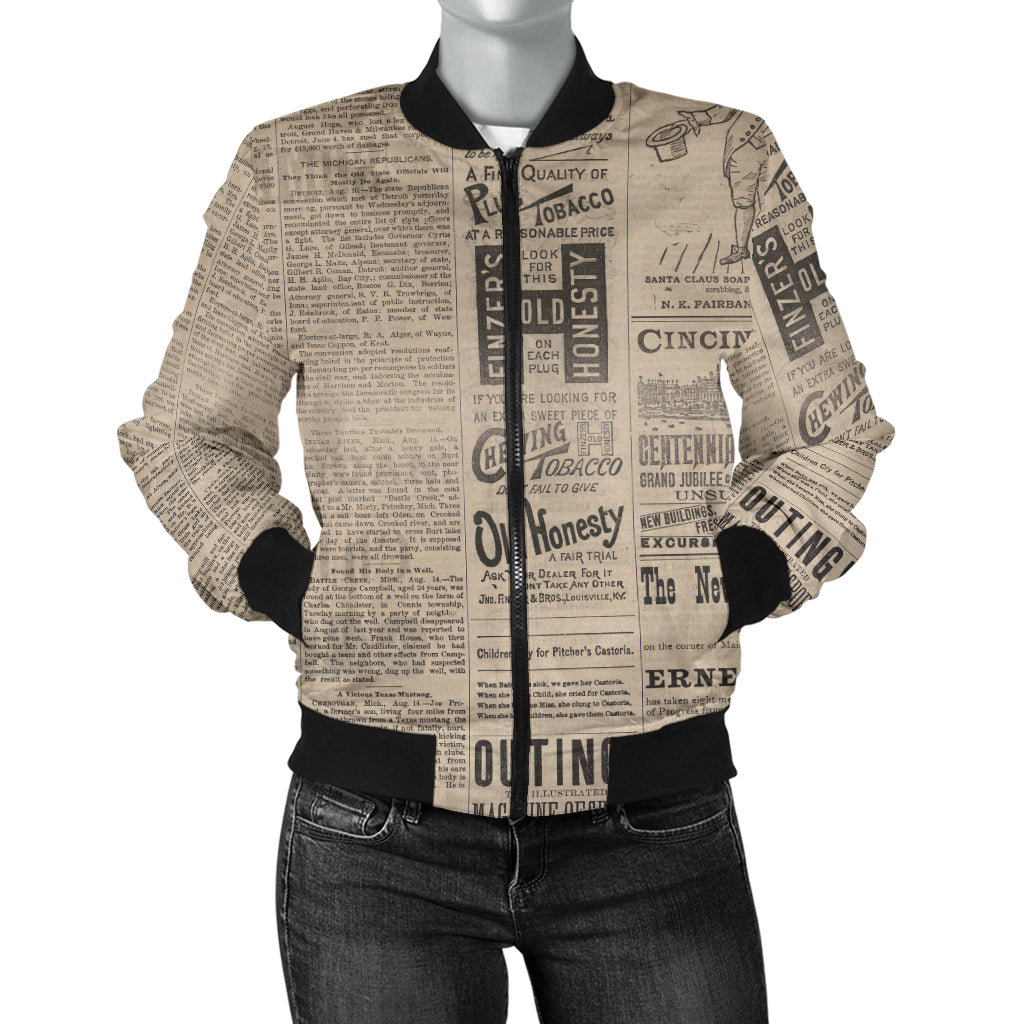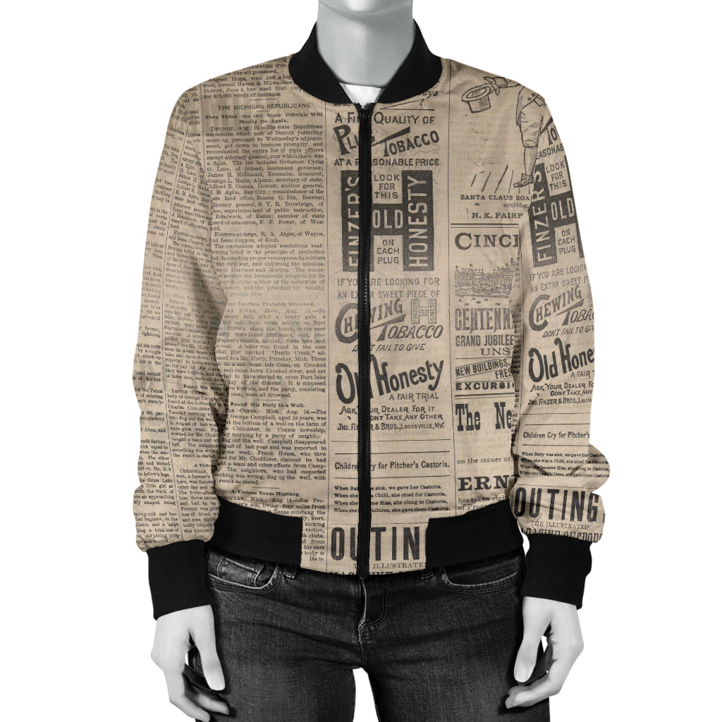 Sports Varsity Style Bomber Jacket Women (N2) Newspaper