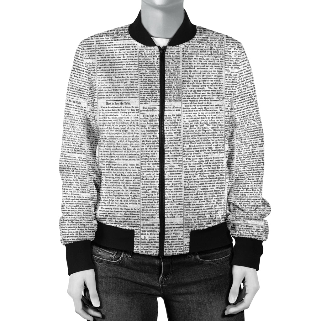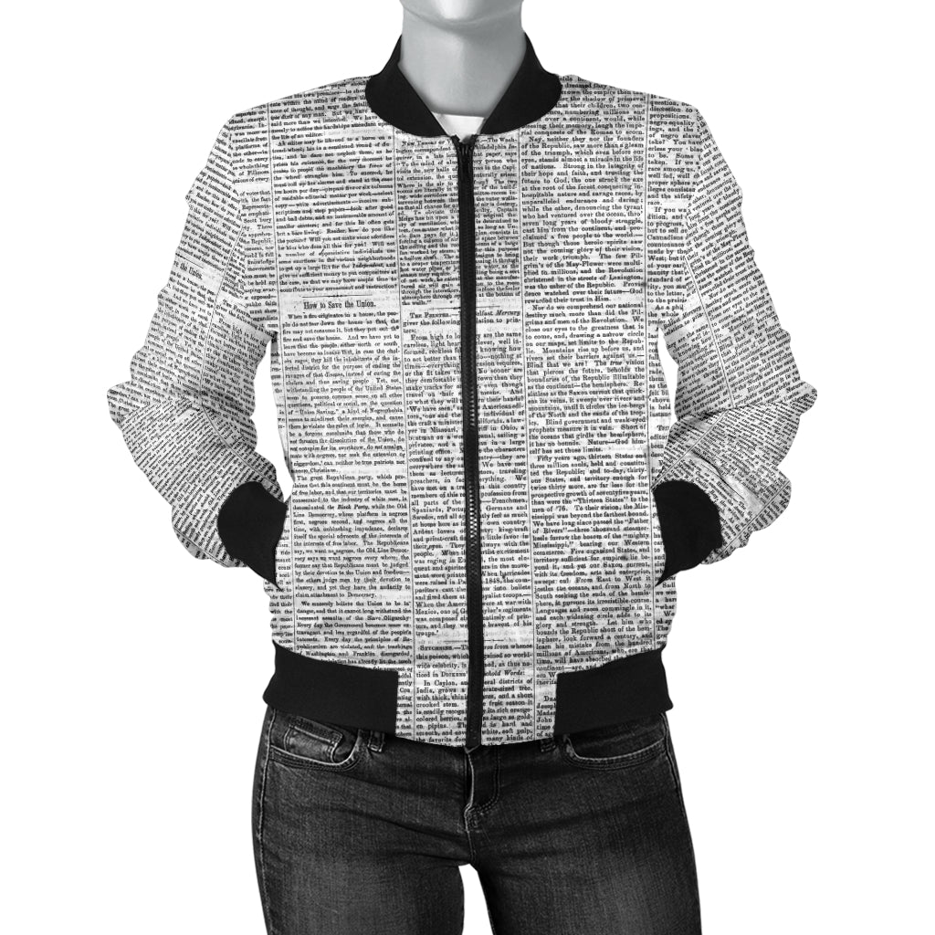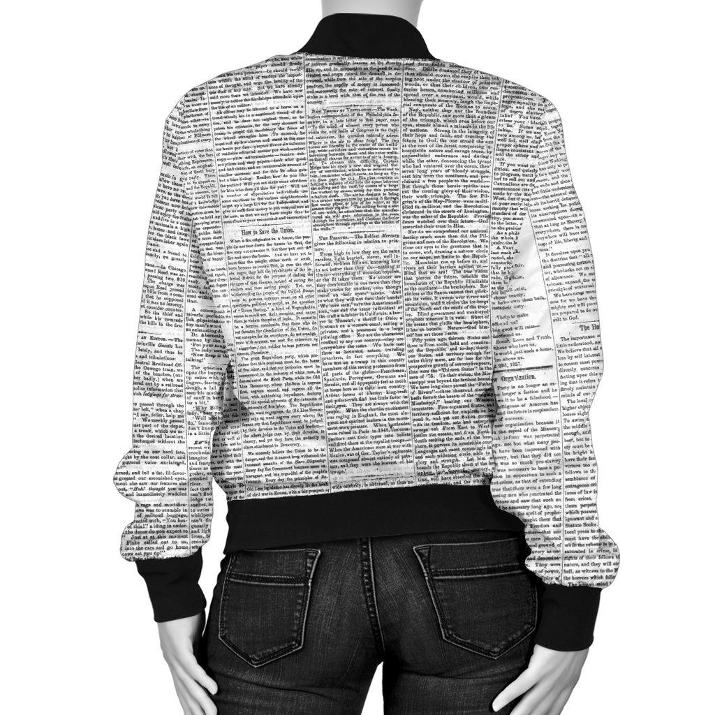 Sports Varsity Style Bomber Jacket Women (N3) Newspaper