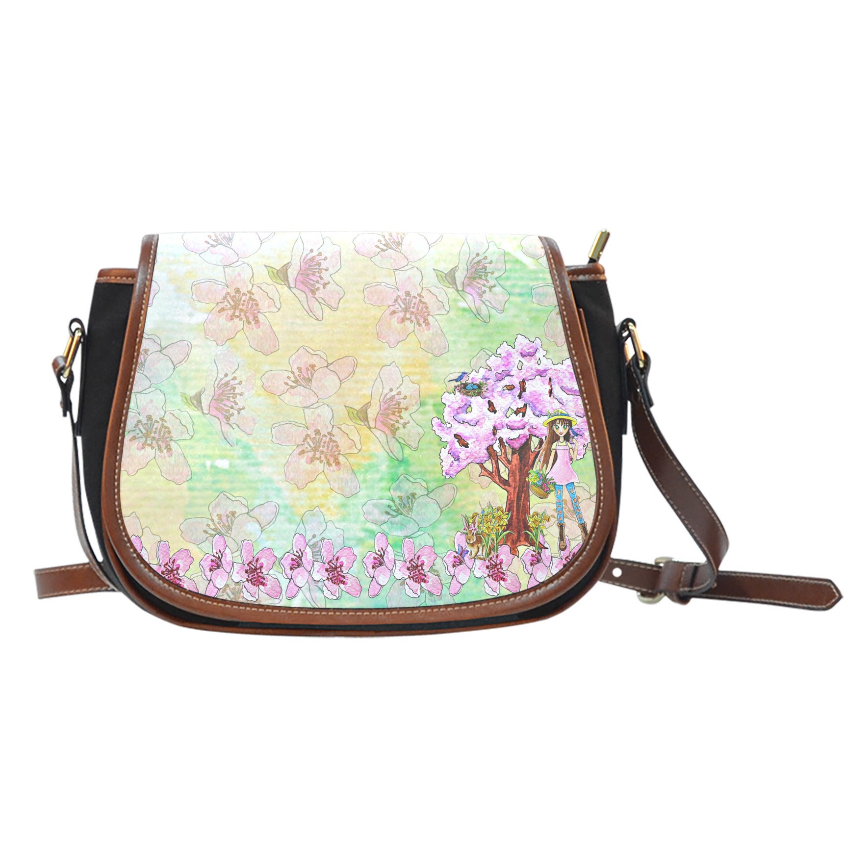 Spring Paper Themed Design 10 Crossbody Shoulder Canvas Leather Saddle Bag