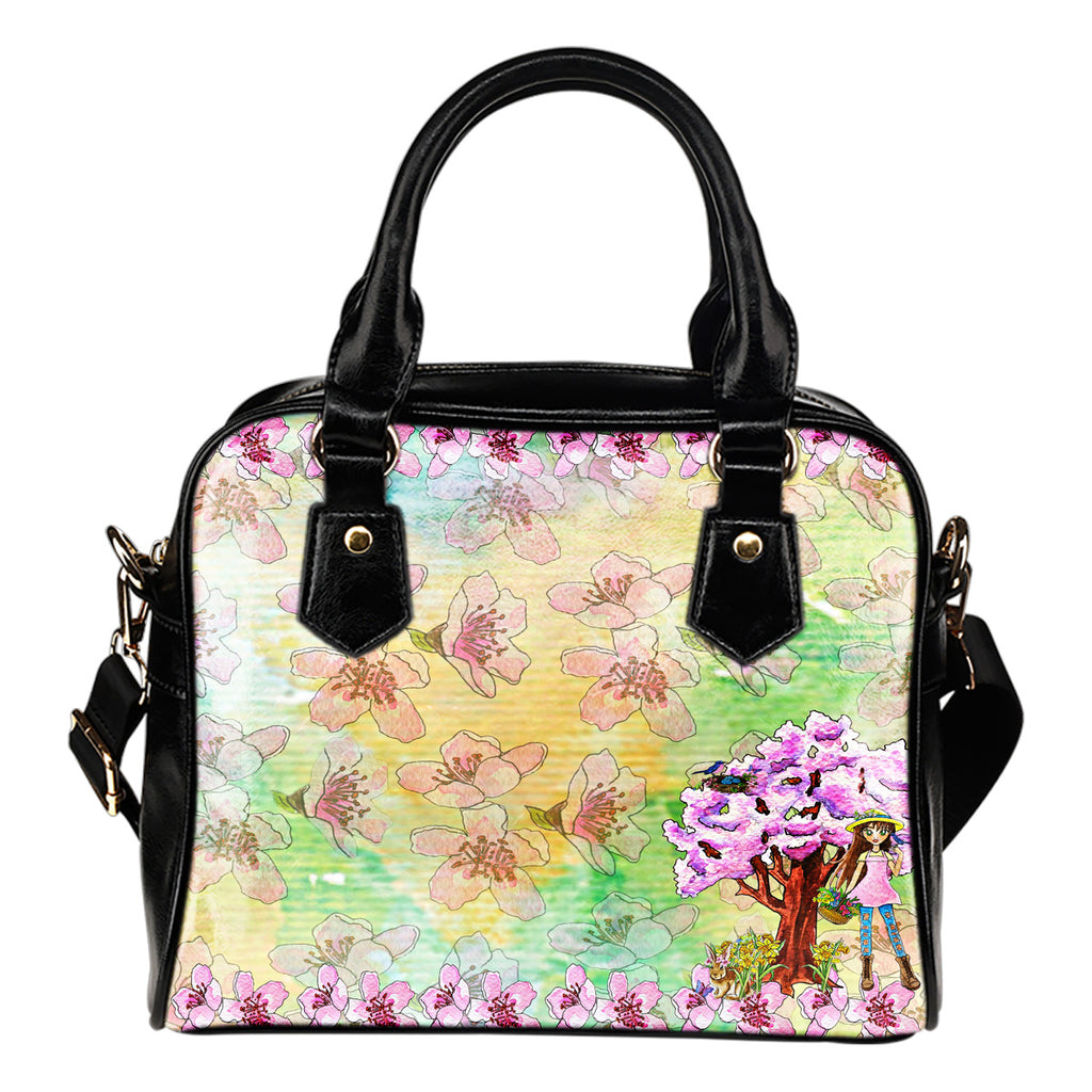 Spring Paper Themed Design B10 Women Fashion Shoulder Handbag Black Vegan Faux Leather