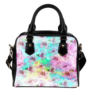 Spring Paper Themed Design B3 Women Fashion Shoulder Handbag Black Vegan Faux Leather