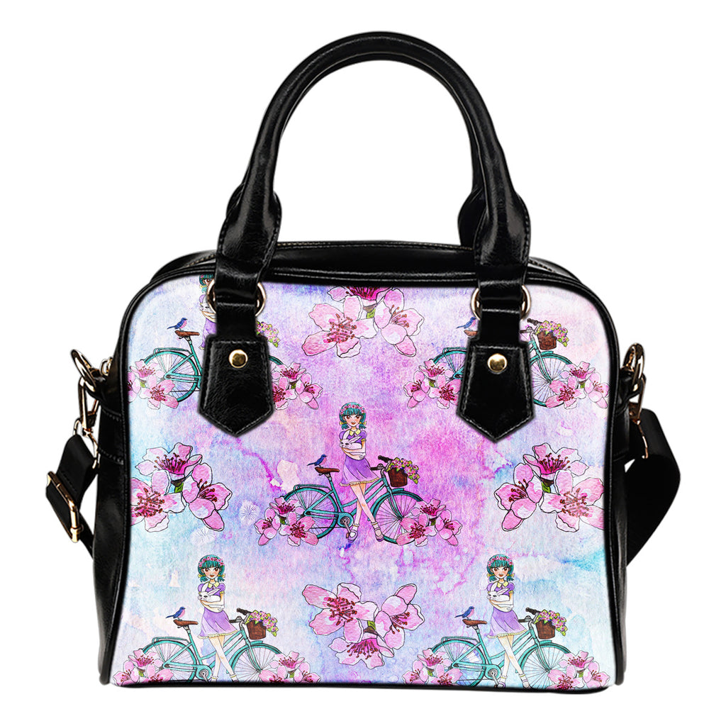 Spring Paper Themed Design B4 Women Fashion Shoulder Handbag Black Vegan Faux Leather