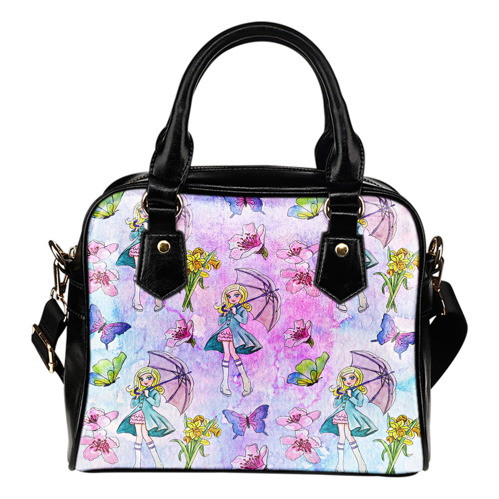 Spring Paper Themed Design B5 Women Fashion Shoulder Handbag Black Vegan Faux Leather