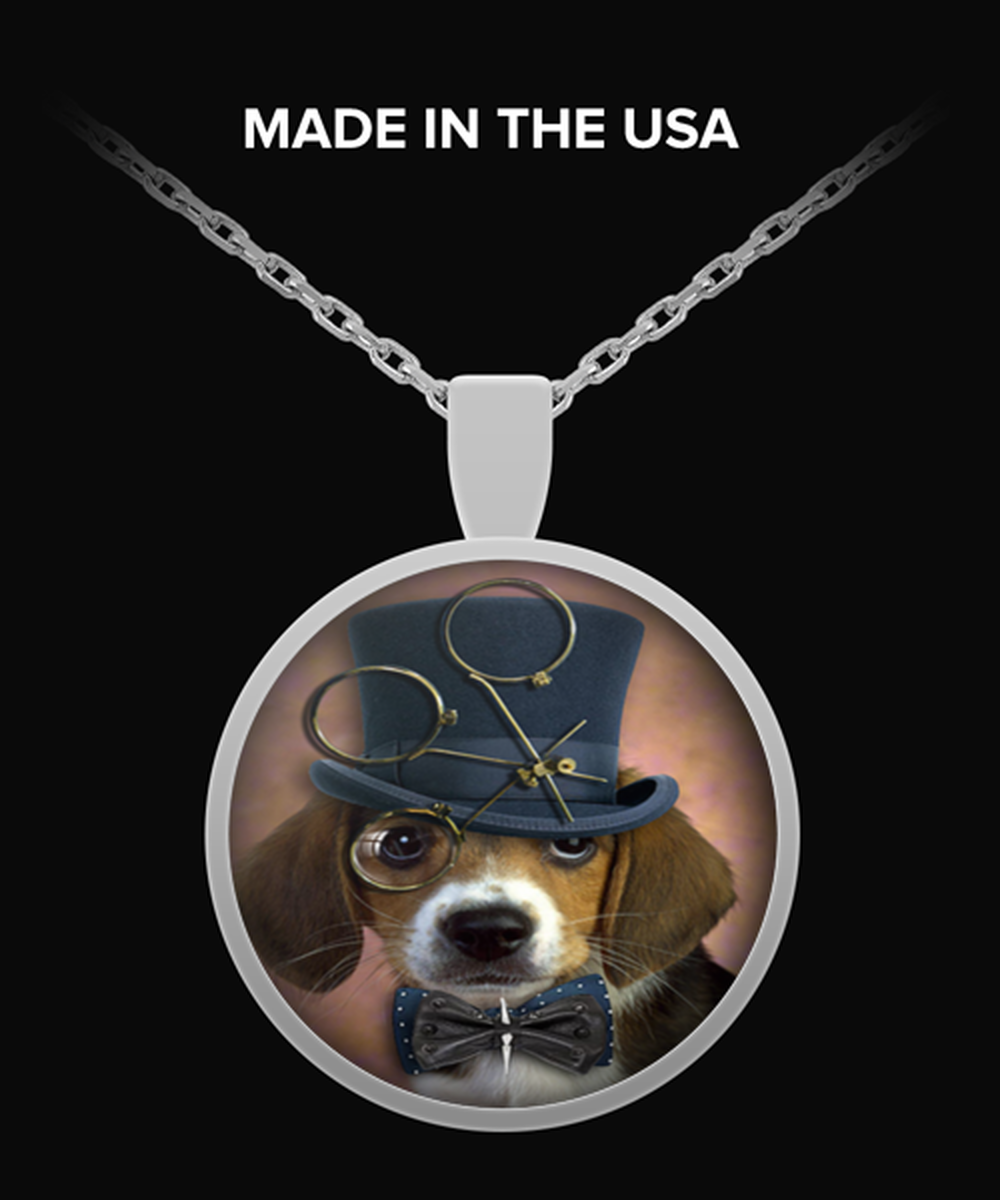 steampunk dog beagle Necklace Round Pendant