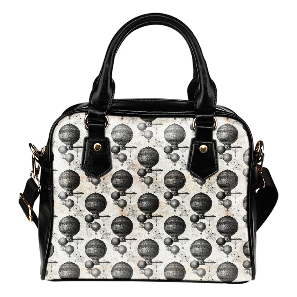 Steampunk Themed Design B15 Women Fashion Shoulder Handbag Black Vegan Faux Leather