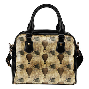 Steampunk Themed Design B4 Women Fashion Shoulder Handbag Black Vegan Faux Leather