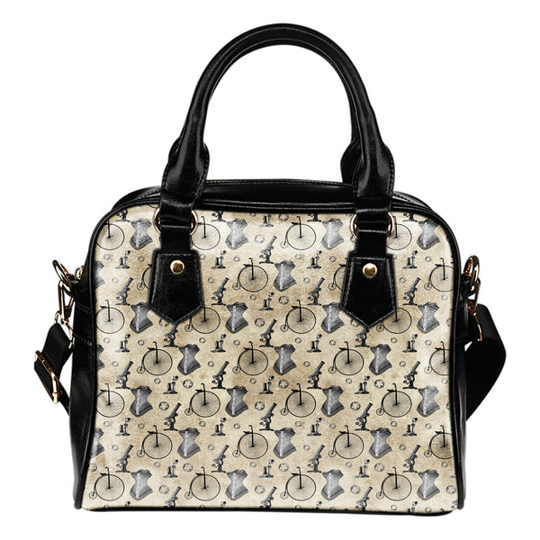 Steampunk Themed Design B6 Women Fashion Shoulder Handbag Black Vegan Faux Leather