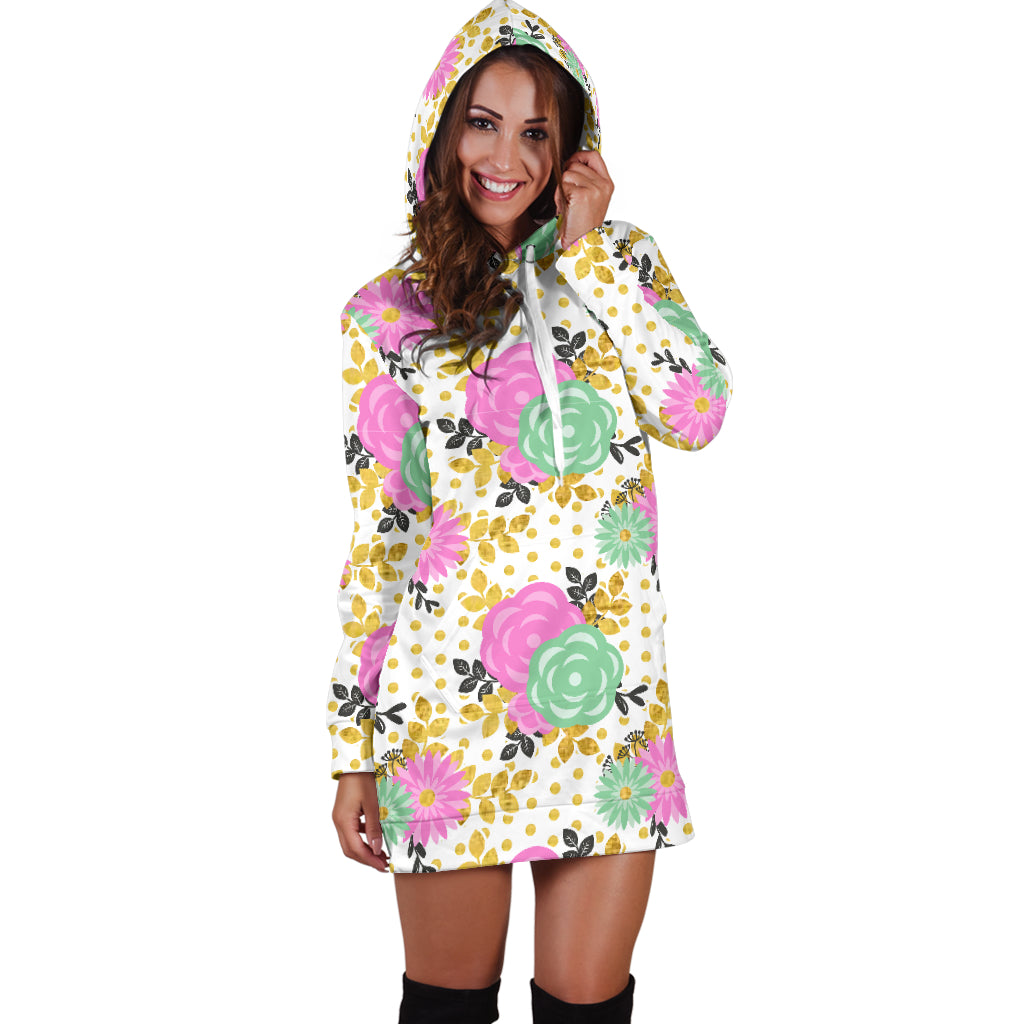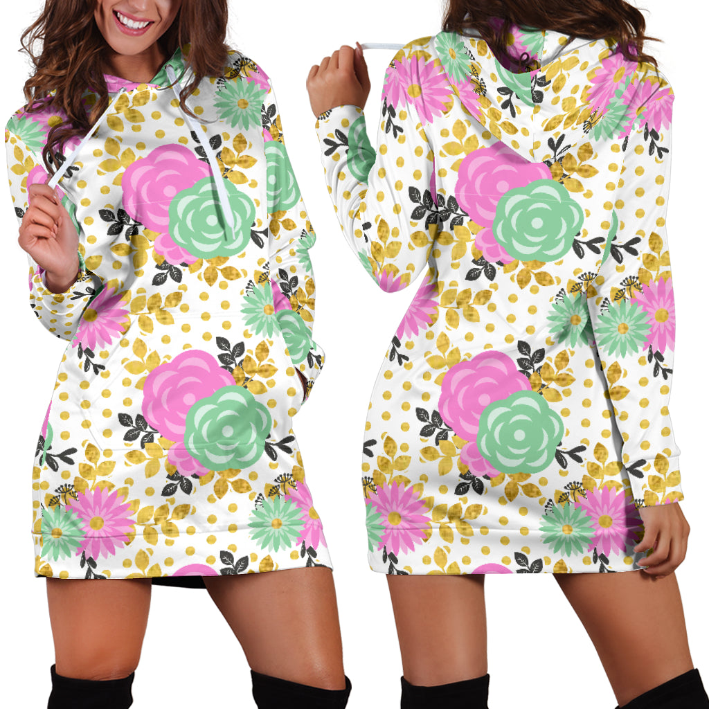 Studio11Couture Women Hoodie Dress Hooded Tunic Stunning Pink Floral Spring Athleisure Sweatshirt