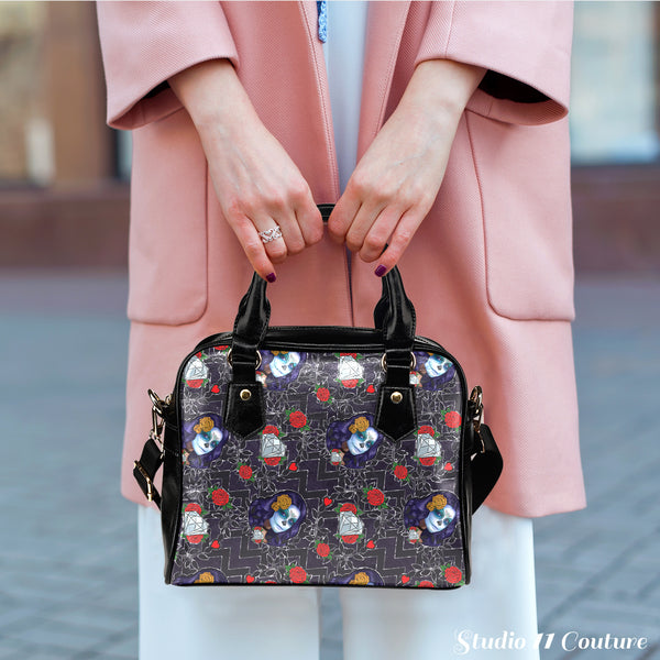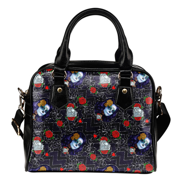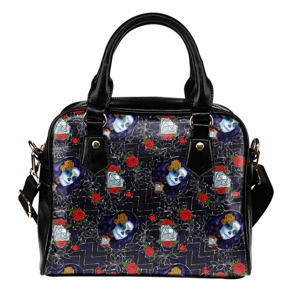 Sugar Skull (A4) Theme Women Fashion Shoulder Handbag Black Vegan Faux Leather