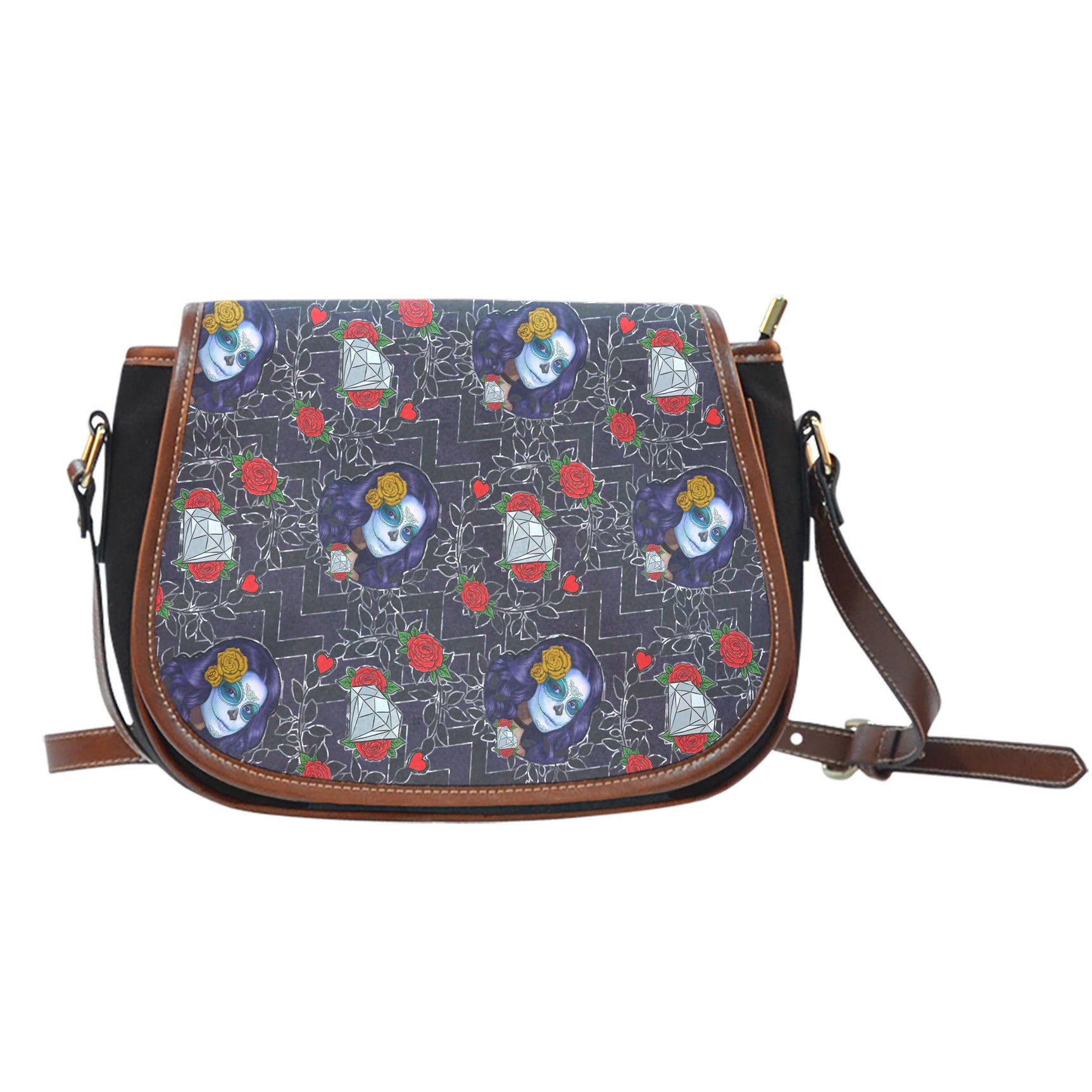 Sugar Skull Themed Design 11 Crossbody Shoulder Canvas Leather Saddle Bag