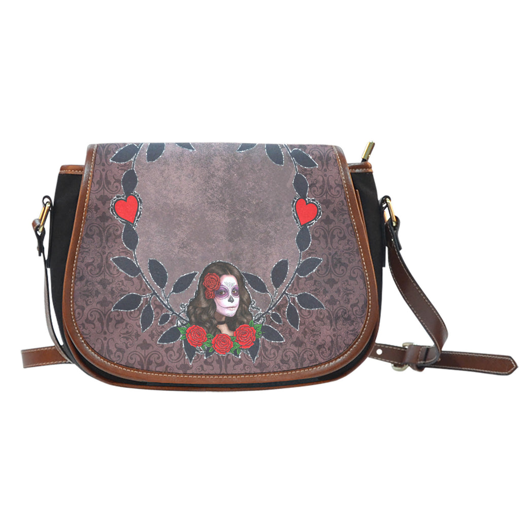 Sugar Skull Themed Design 4 Crossbody Shoulder Canvas Leather Saddle Bag