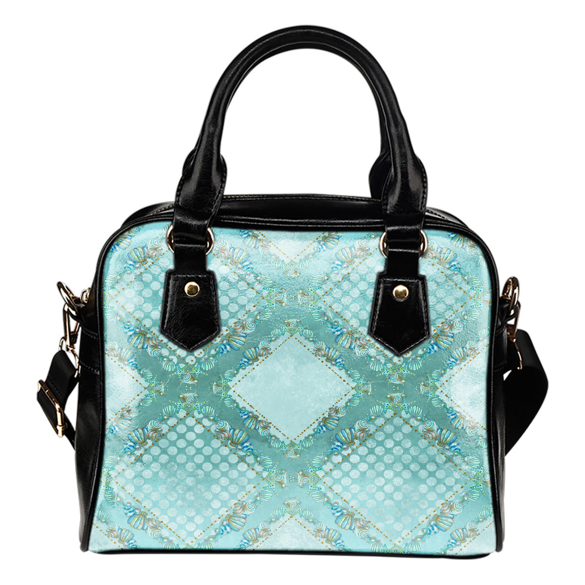 Summer Mermaid Themed Design B13 Women Fashion Shoulder Handbag Black Vegan Faux Leather