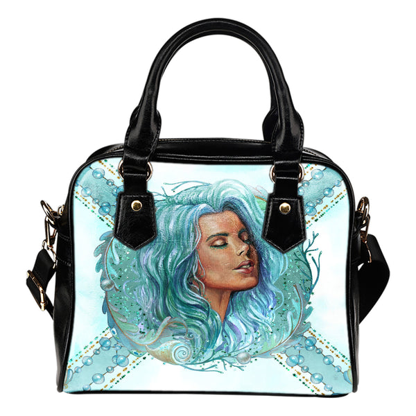 Summer Mermaid Themed Design B3 Women Fashion Shoulder Handbag Black Vegan Faux Leather