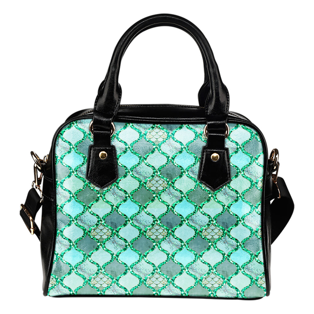 Summer Mermaid Themed Design B5 Women Fashion Shoulder Handbag Black Vegan Faux Leather