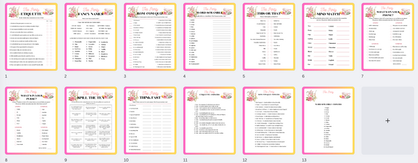 Imagine the clinking of teacups, the soft hum of conversation, and that beautiful table setup. But this time, your tea party isn’t just about sipping tea – it’s filled with laughter and games that bring out the playful side of every guest. The "Tea Party Games Box" takes your elegant gathering and adds the perfect twist of fun.