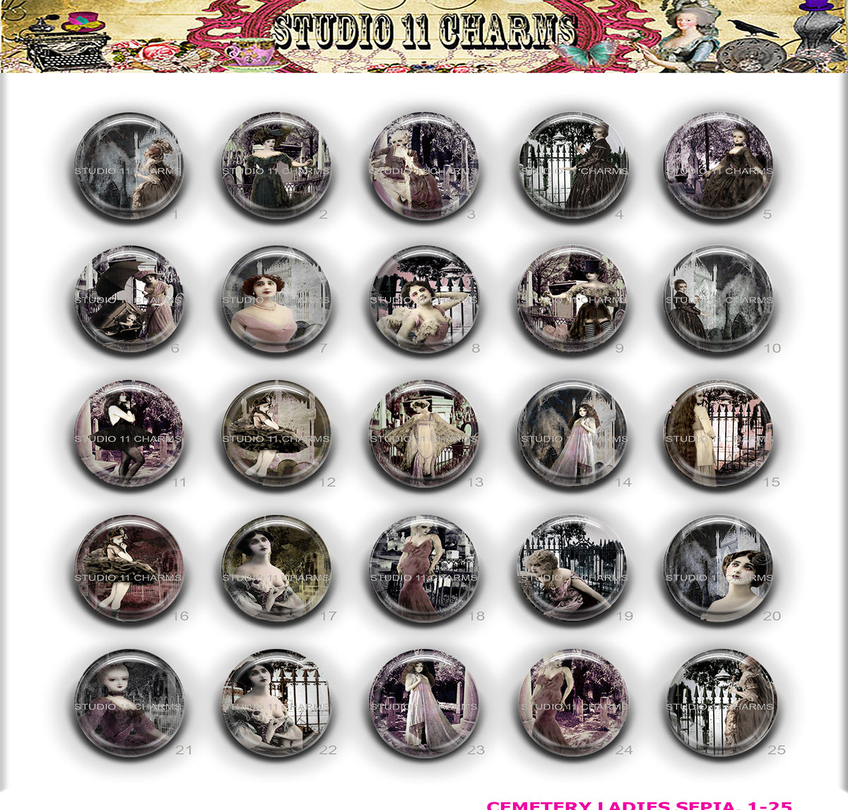 TESTING 25pcs 25mm 1 inch Bottle Cap Resin Cameo Cabochon. Cemetery Ladies 1b