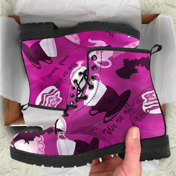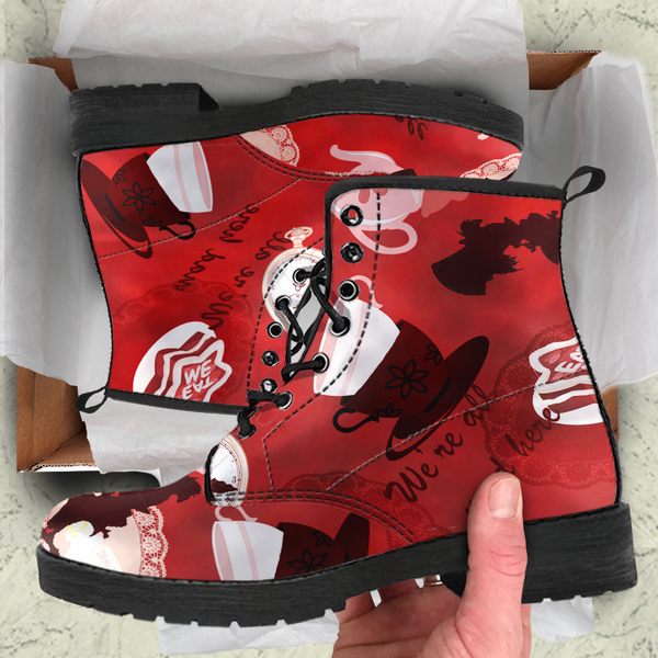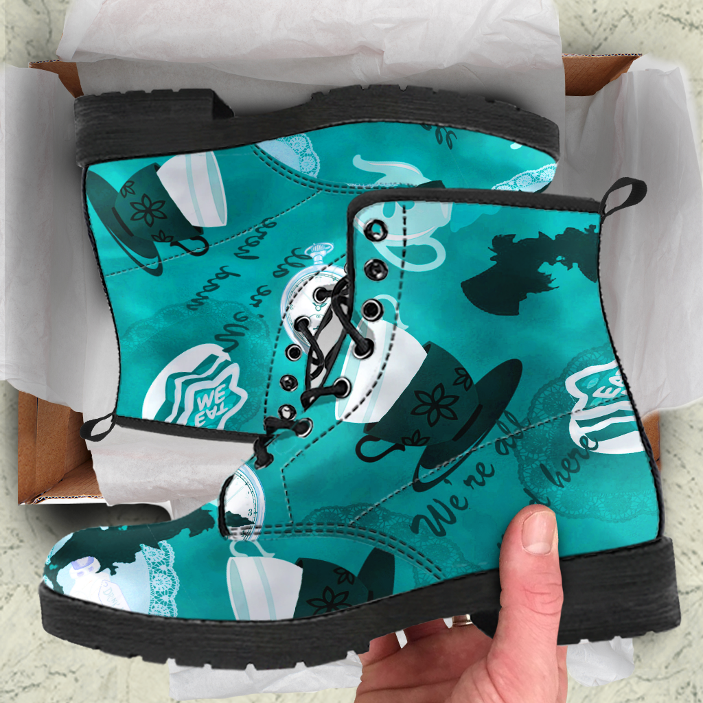 - Features eco-friendly leather with a double-sided print and rounded toe construction.