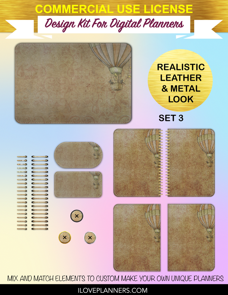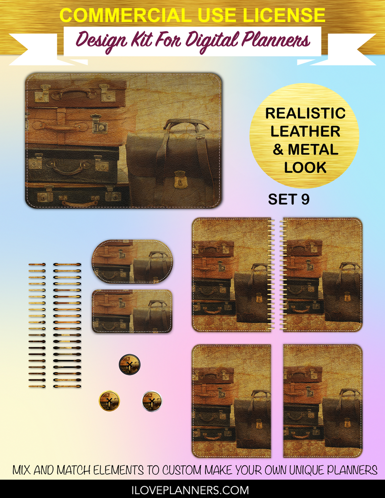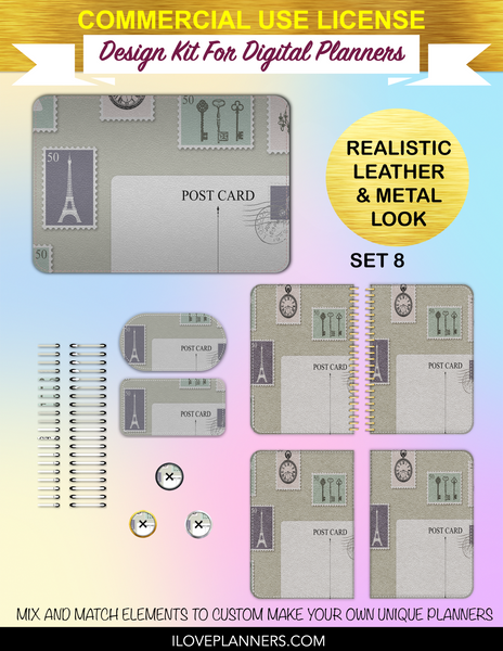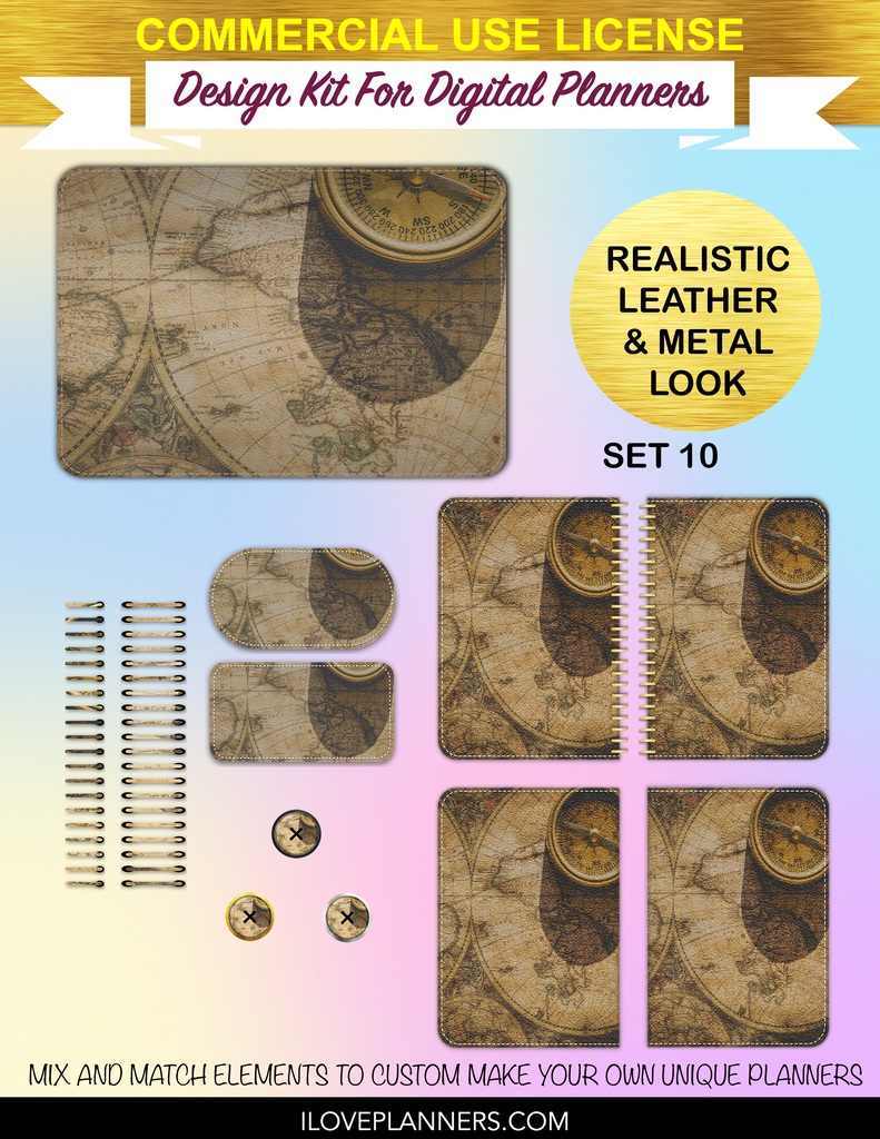 Travel Scrapbook Vintage Cover Kit for Digital Planners, Spirals, Coils, Customize Your Digital Planners, Commercial Use OK, Digital Planners, Digital Journals, Compatible for PC, Mac, Canva. #114