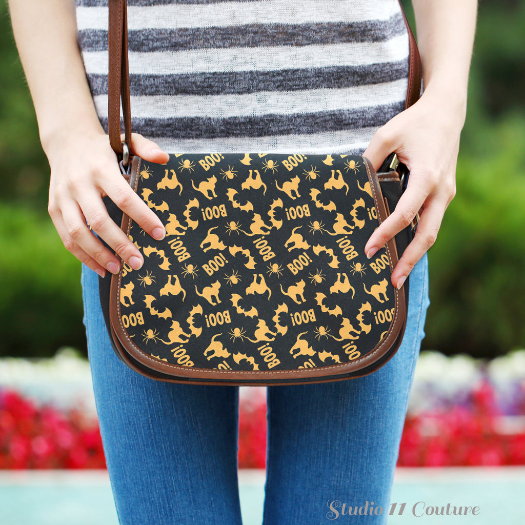Trick or Treat (K10) Crossbody Shoulder Canvas Leather Saddle Bag