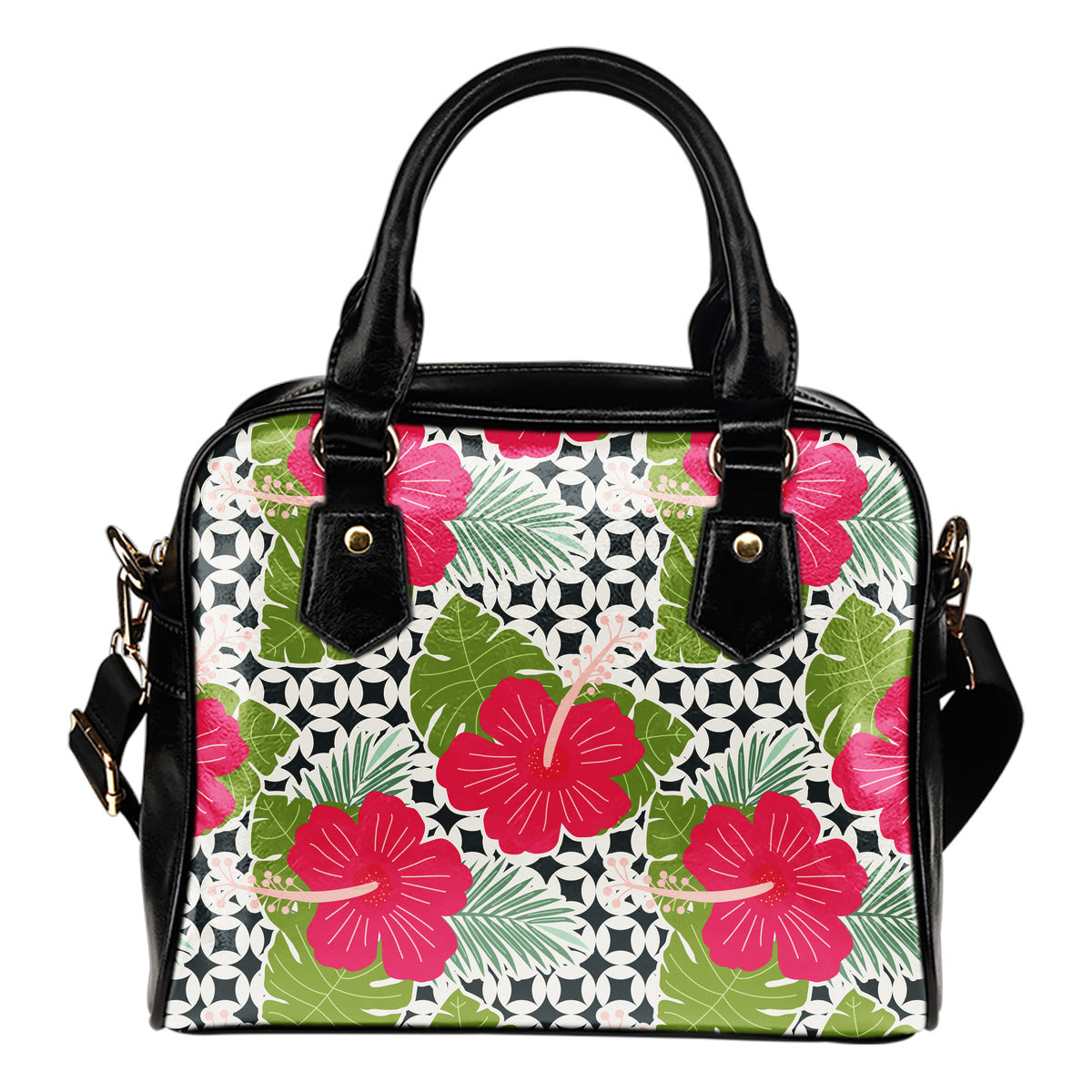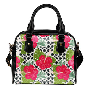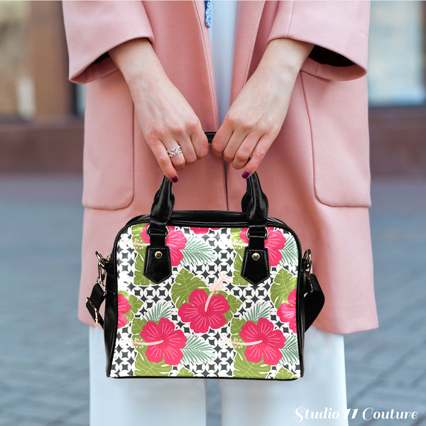Tropical (A6) Theme Women Fashion Shoulder Handbag Black Vegan Faux Leather