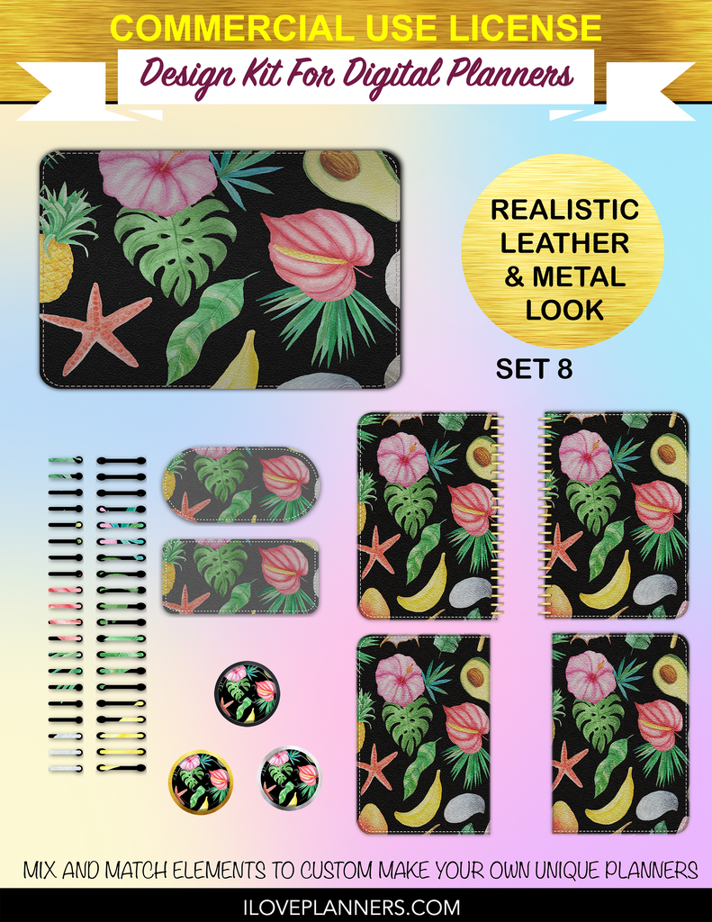 Tropical Pattern for Digital Planners, Spirals, Coils, Customize Your Digital Planners, Commercial Use OK, Digital Planners, Digital Journals, Compatible for PC, Mac, CANVA. #2