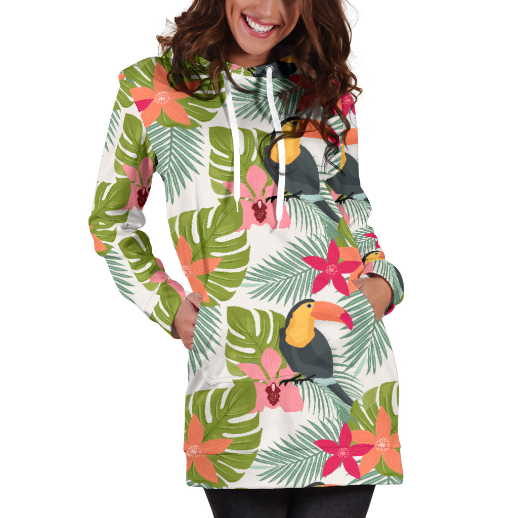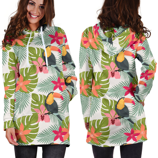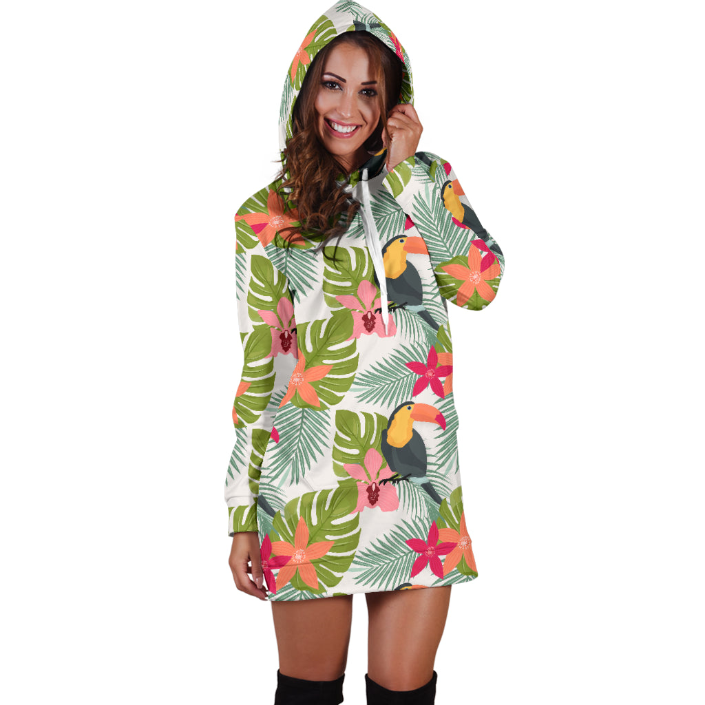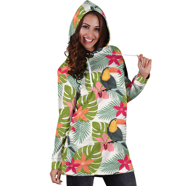 Studio11Couture Women Hoodie Dress Hooded Tunic Tropical Small Tucan Bird Athleisure Sweatshirt