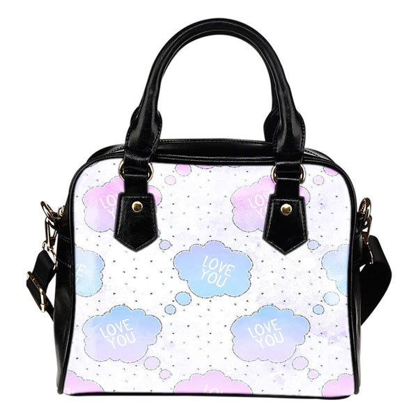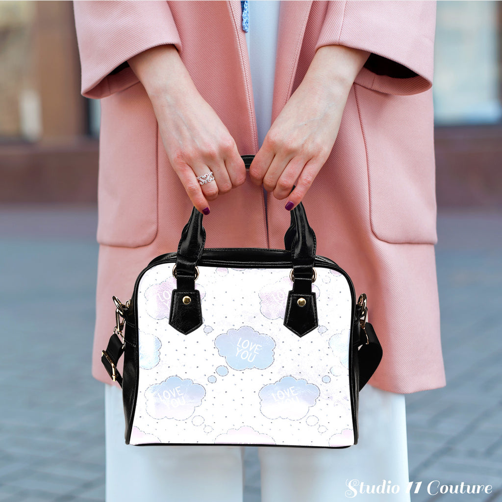 Unicorn Love You Cloudy Theme Women Fashion Shoulder Handbag Black Vegan Faux Leather