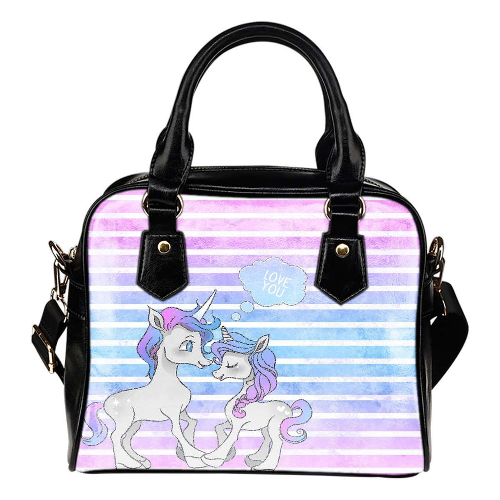 Unicorn Love You Theme Women Fashion Shoulder Handbag Black Vegan Faux Leather