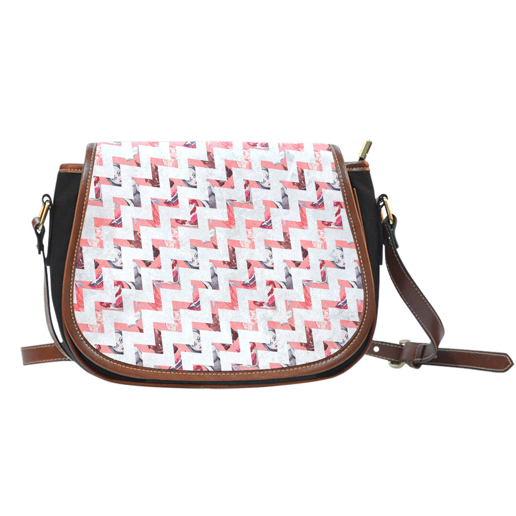 Curved detailing ornates the saddle-shaped flap of a lux crossbody bag crafted from luscious leather and canvas materials. This saddle bag has a flap over the zipper closure. The handbag has an adjustable leather strap with leather detailing. The body is a high-quality canvas material. The prints on the exterior is a contemporary spin on a vintage-inspired leather saddle bag. Great for traveling, date night, and for work. So versatile, you can wear this with any look.