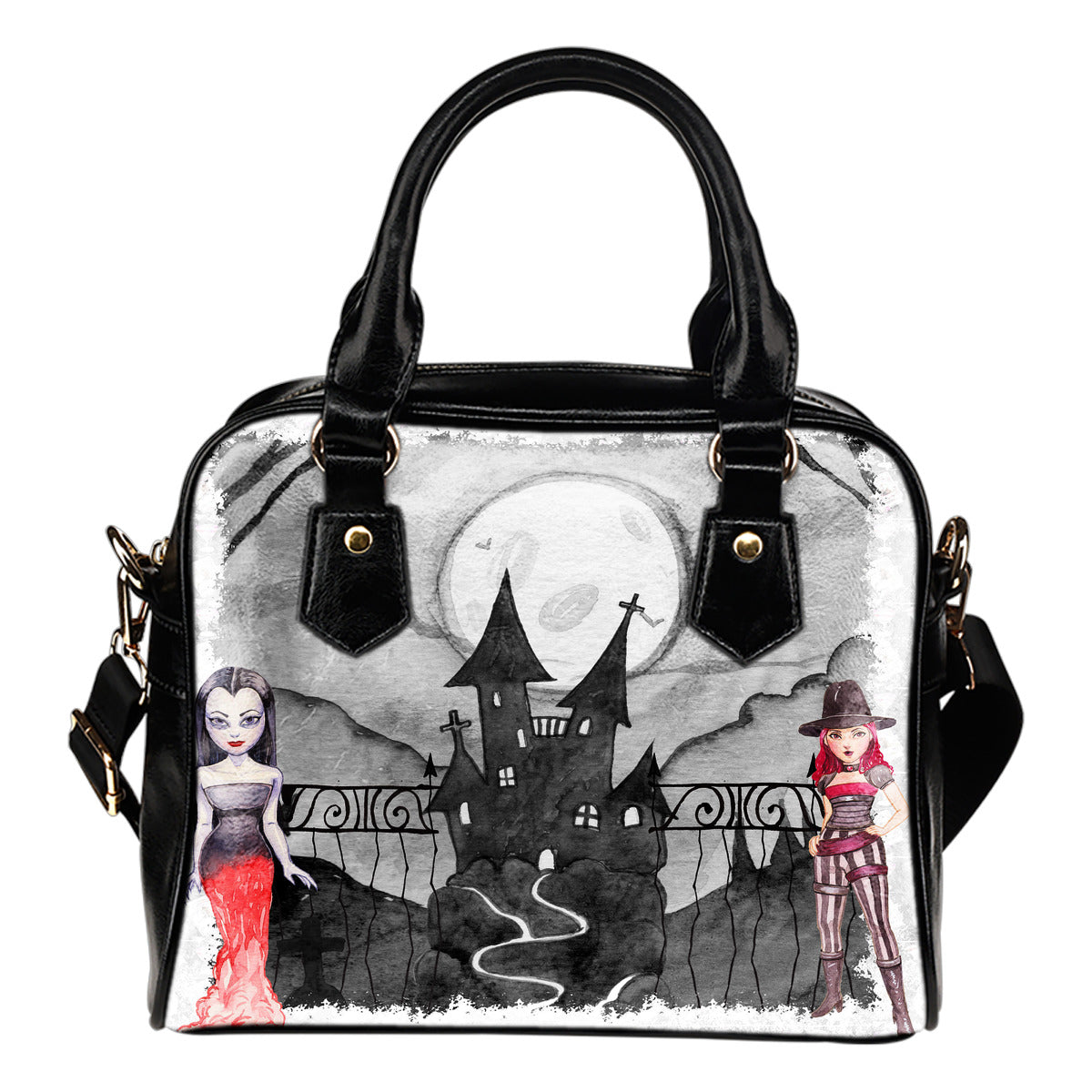 Vampire Themed Design B15 Women Fashion Shoulder Handbag Black Vegan Faux Leather