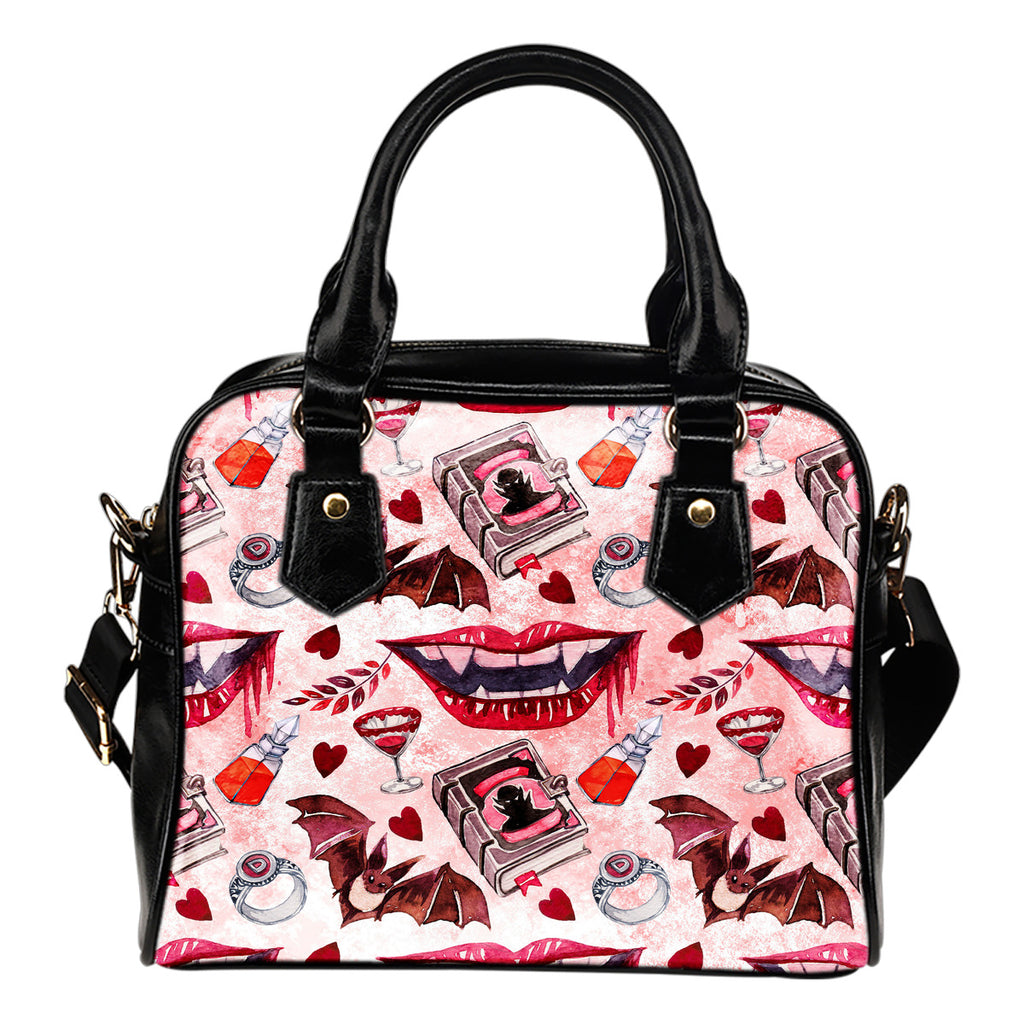 Vampire Themed Design B7 Women Fashion Shoulder Handbag Black Vegan Faux Leather