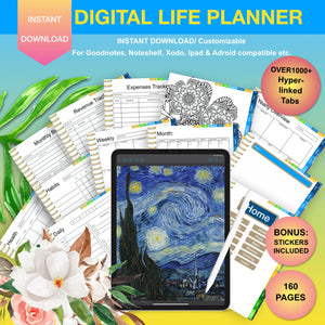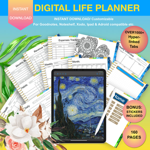 Vincent Van Gogh Starry Night Undated Digital Life Planner/ GoodNotes, Xodo, Digital Journal, iPad Planner, tablet Planner Digital Planner Stickers