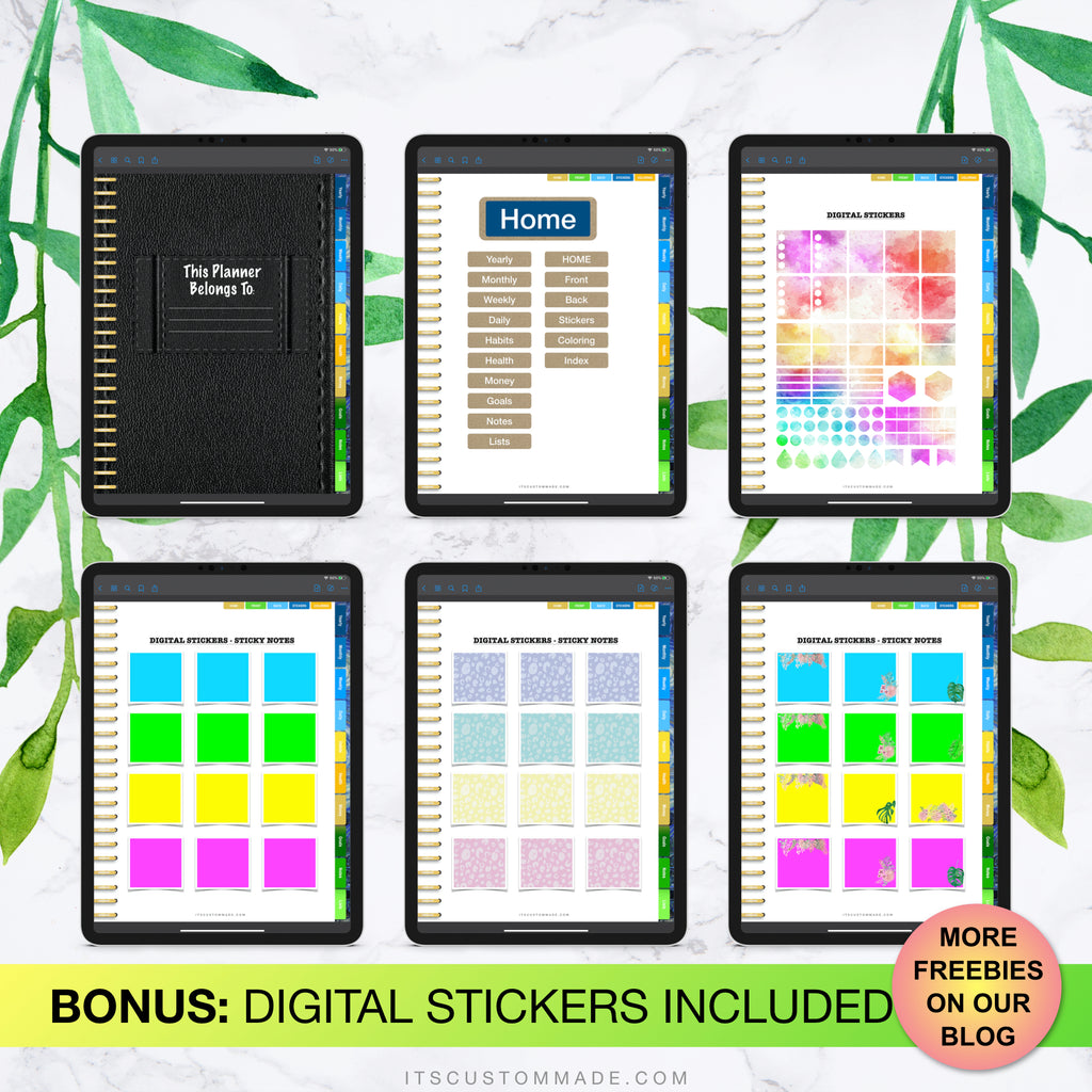 This is an undated planner with clickable preprogrammed tabs. Check out the listing photos to see previews of screenshots of what you will get.