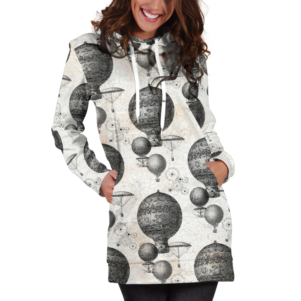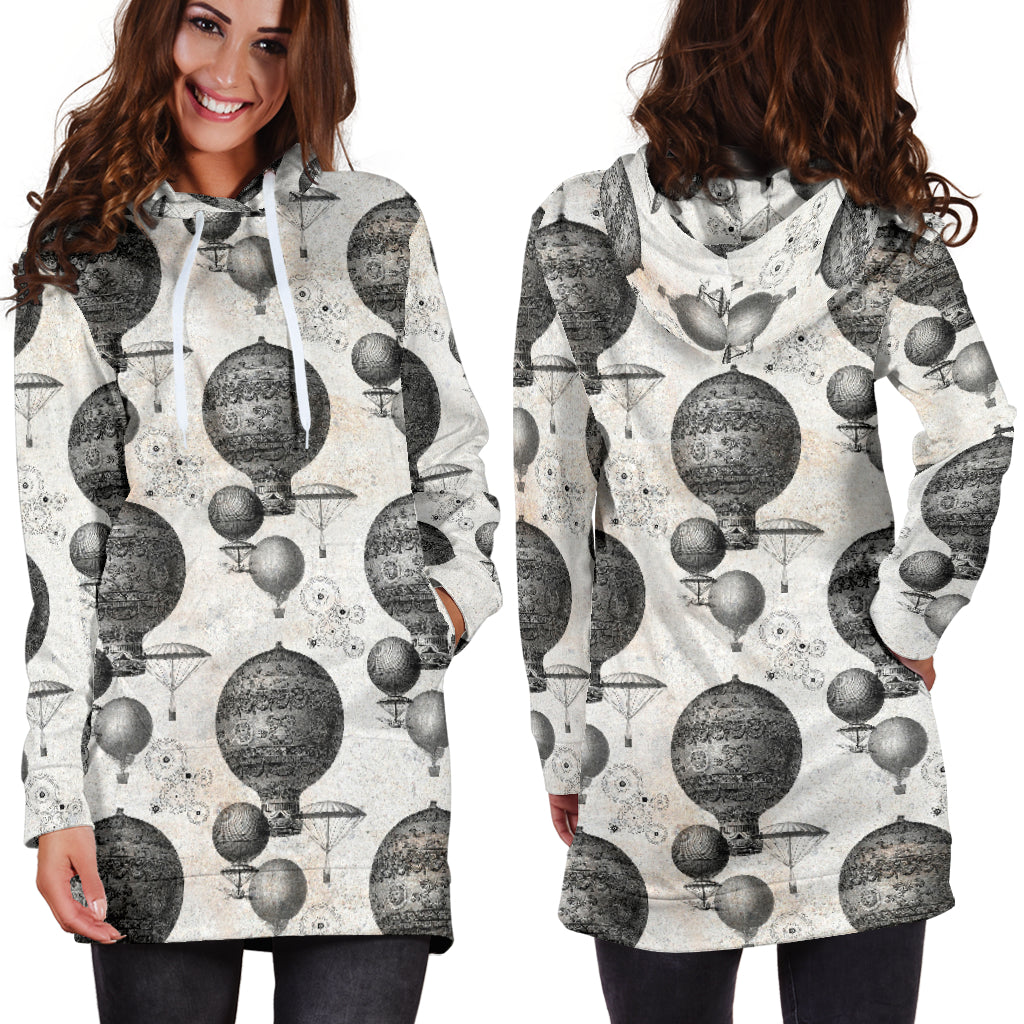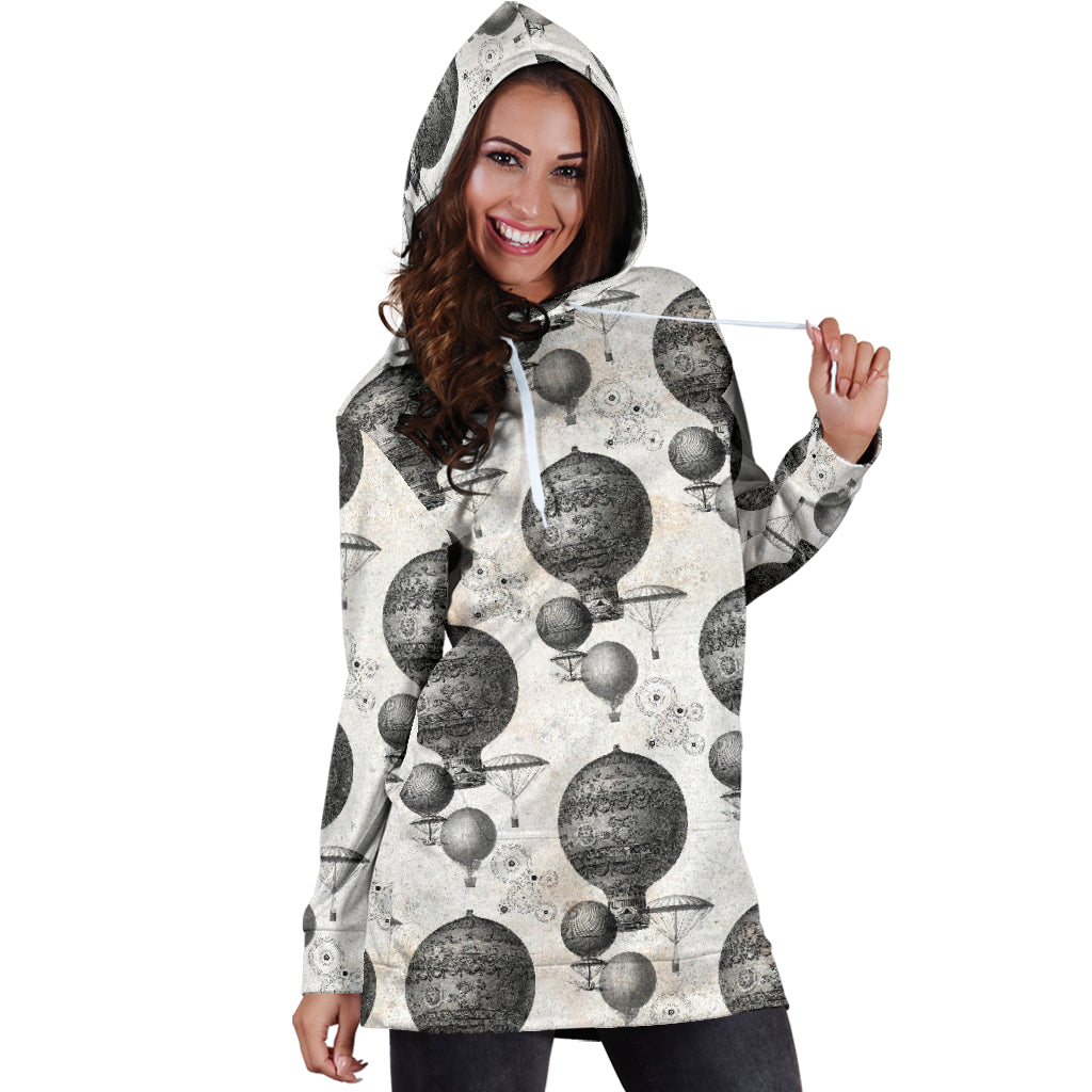 Studio11Couture Women Hoodie Dress Hooded Tunic Vintage Hot Air Balloon Steampunk Athleisure Sweatshirt