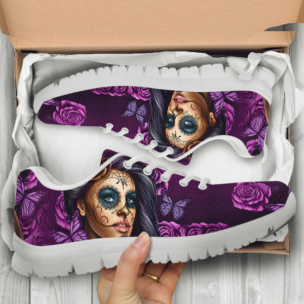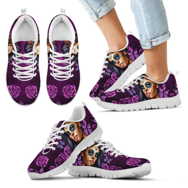 Violet Sugar Skull Girl Kids Sneakers