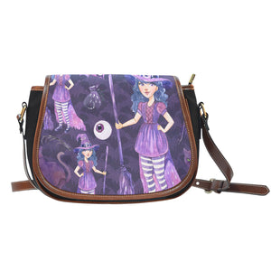 Witch Themed Design 2 Crossbody Shoulder Canvas Leather Saddle Bag