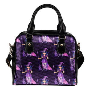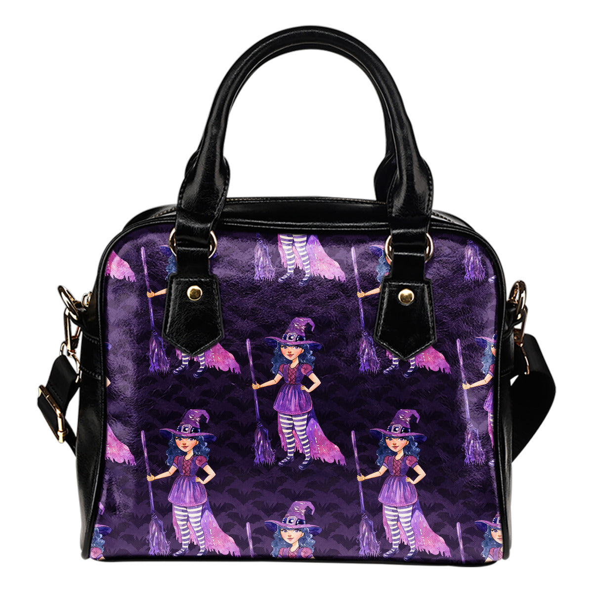 Witch Themed Design B11 Women Fashion Shoulder Handbag Black Vegan Faux Leather