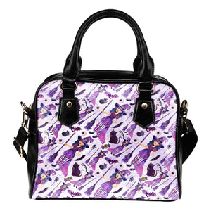 Witch Themed Design B14 Women Fashion Shoulder Handbag Black Vegan Faux Leather