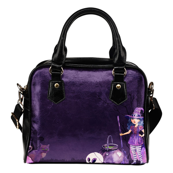 Witch Themed Design B3 Women Fashion Shoulder Handbag Black Vegan Faux Leather
