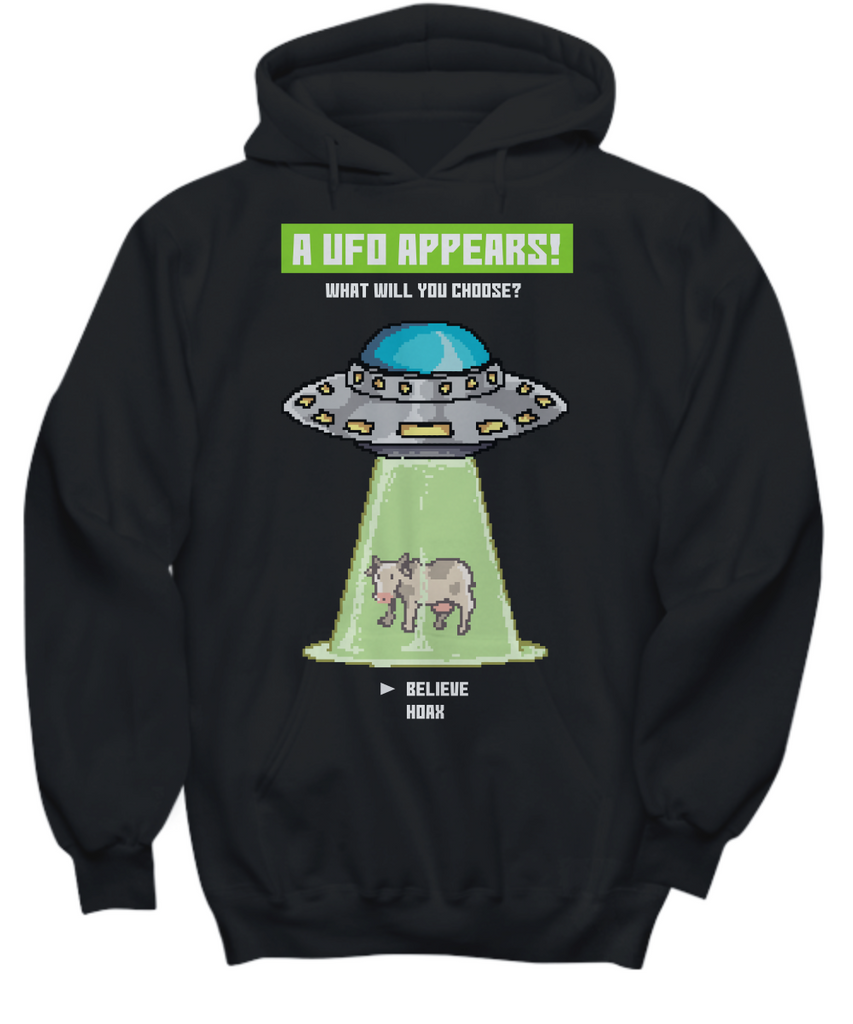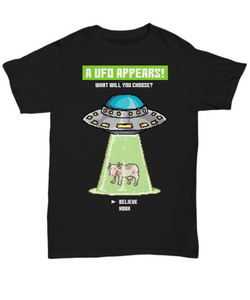 Women and Men Tee Shirt T-Shirt Hoodie Sweatshirt A UFO Appears What Will You Choose