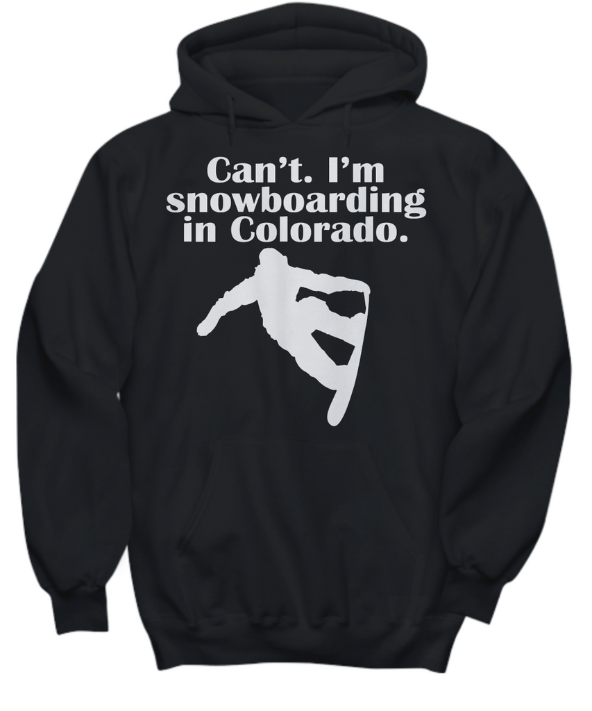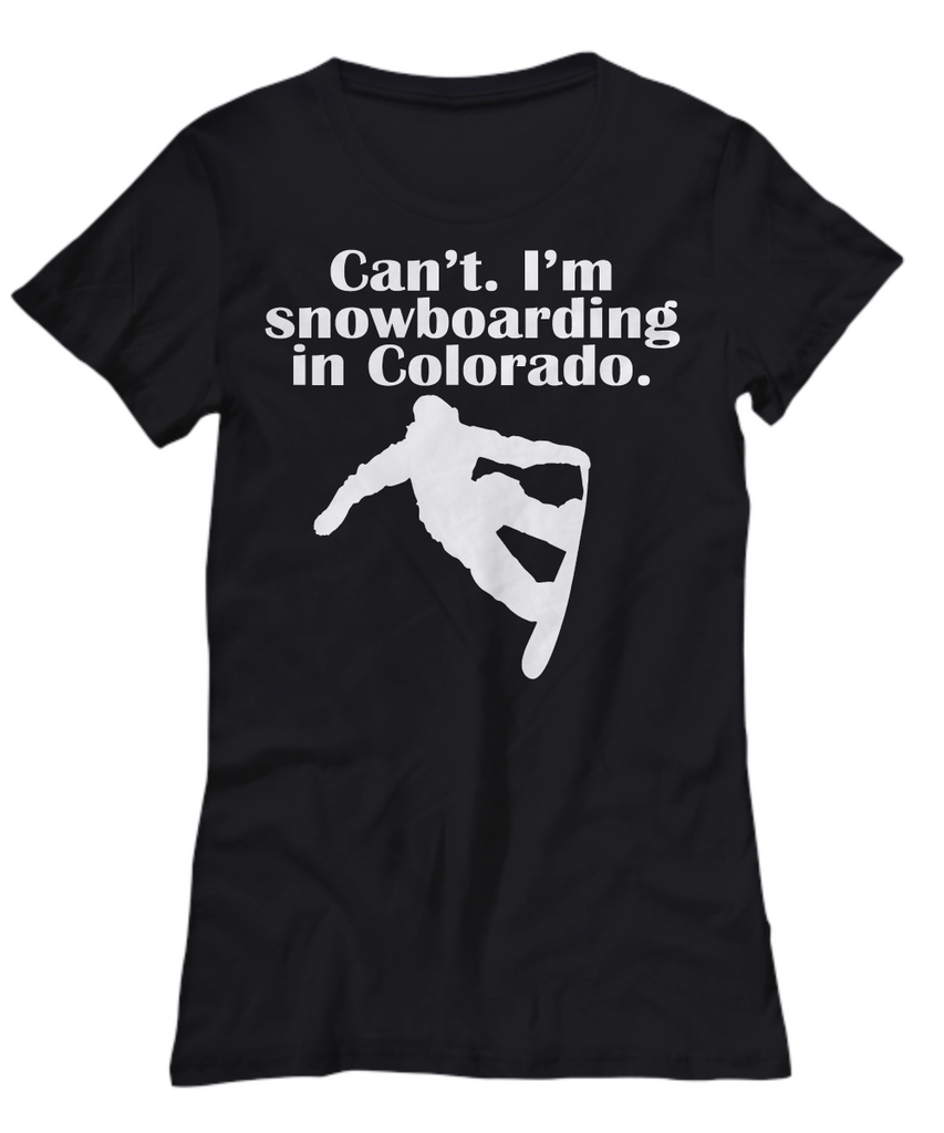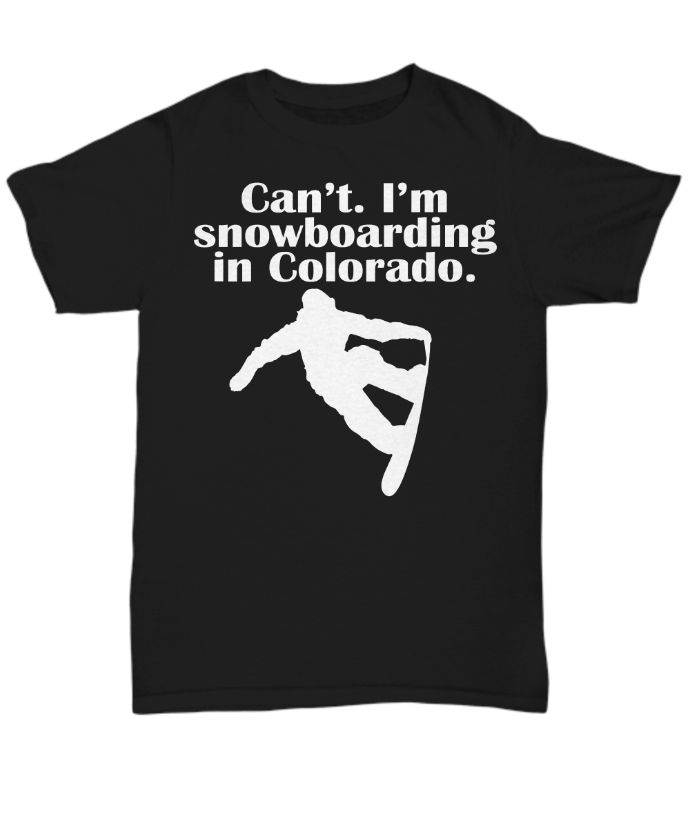 Women and Men Tee Shirt T-Shirt Hoodie Sweatshirt Can't I'm Snowboarding In Colorado