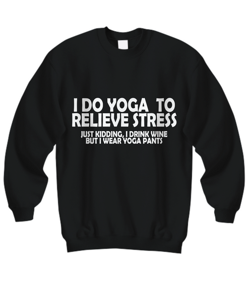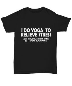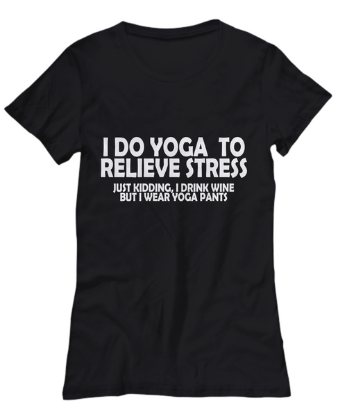 Women and Men Tee Shirt T-Shirt Hoodie Sweatshirt I Do Yoga To Relieve Stress Just Kidding, I Drink Wine But I Wear Yoga Pants