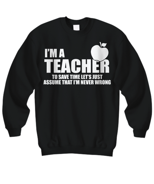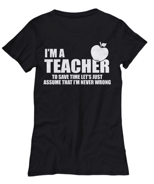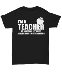 Women and Men Tee Shirt T-Shirt Hoodie Sweatshirt I'm A Teacher To Save Time Let's Just Assume That I'm Never Wrong