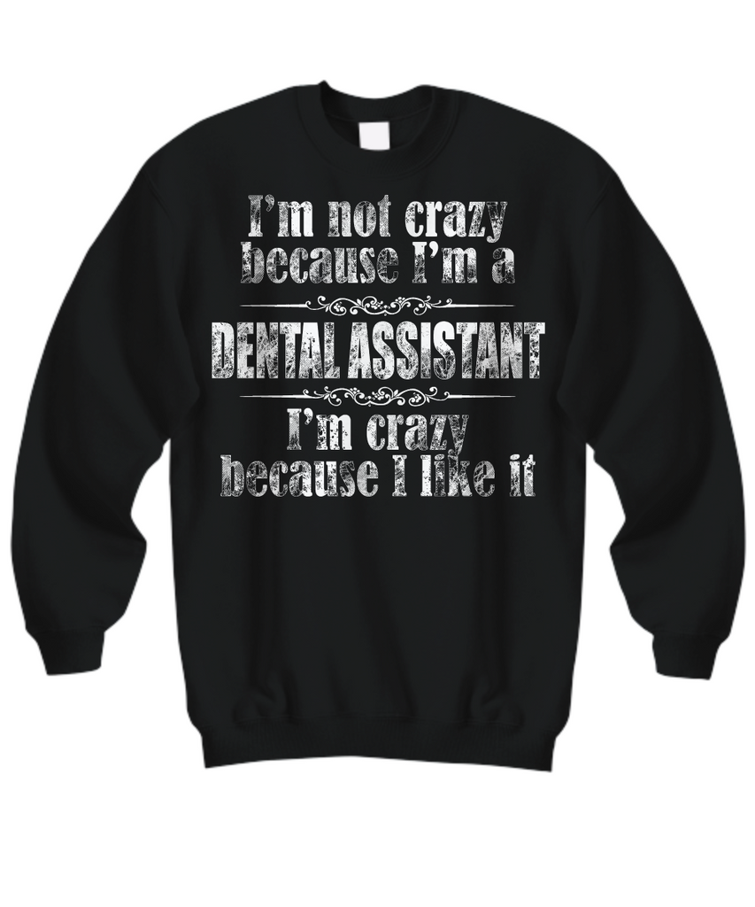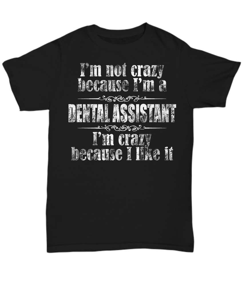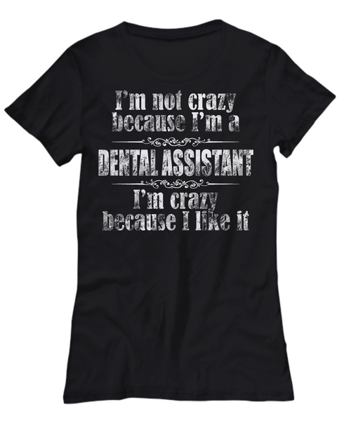Women and Men Tee Shirt T-Shirt Hoodie Sweatshirt I'm Not Crazy Because I'm A Dental Assistant I'm Crazy Because I Like It