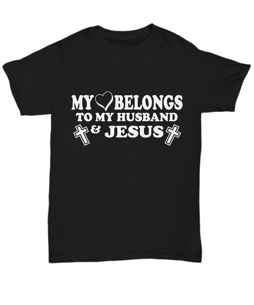 Women and Men Tee Shirt T-Shirt Hoodie Sweatshirt My Love Belongs to My Husband & Jesus