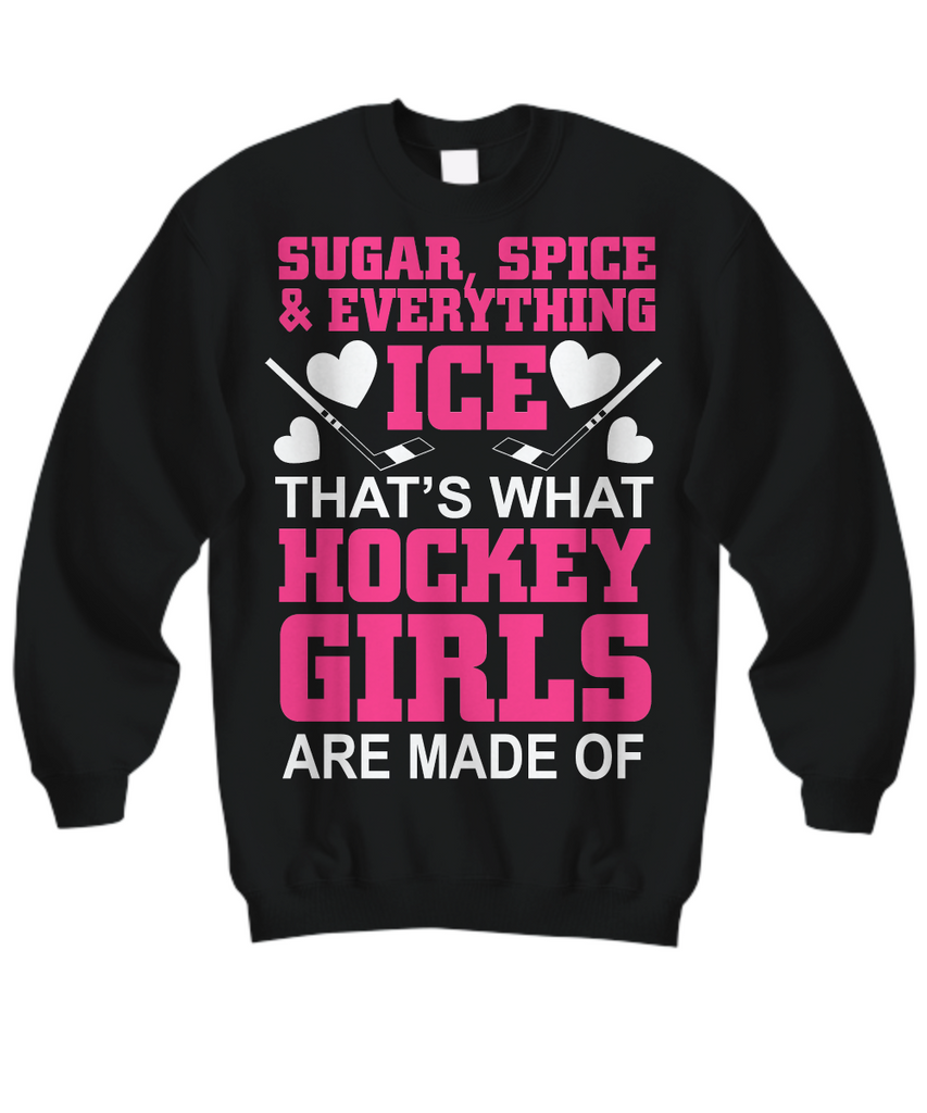 Women and Men Tee Shirt T-Shirt Hoodie Sweatshirt Sugar, Spice & Everything Ice That's What Hockey Girls Are Made Of