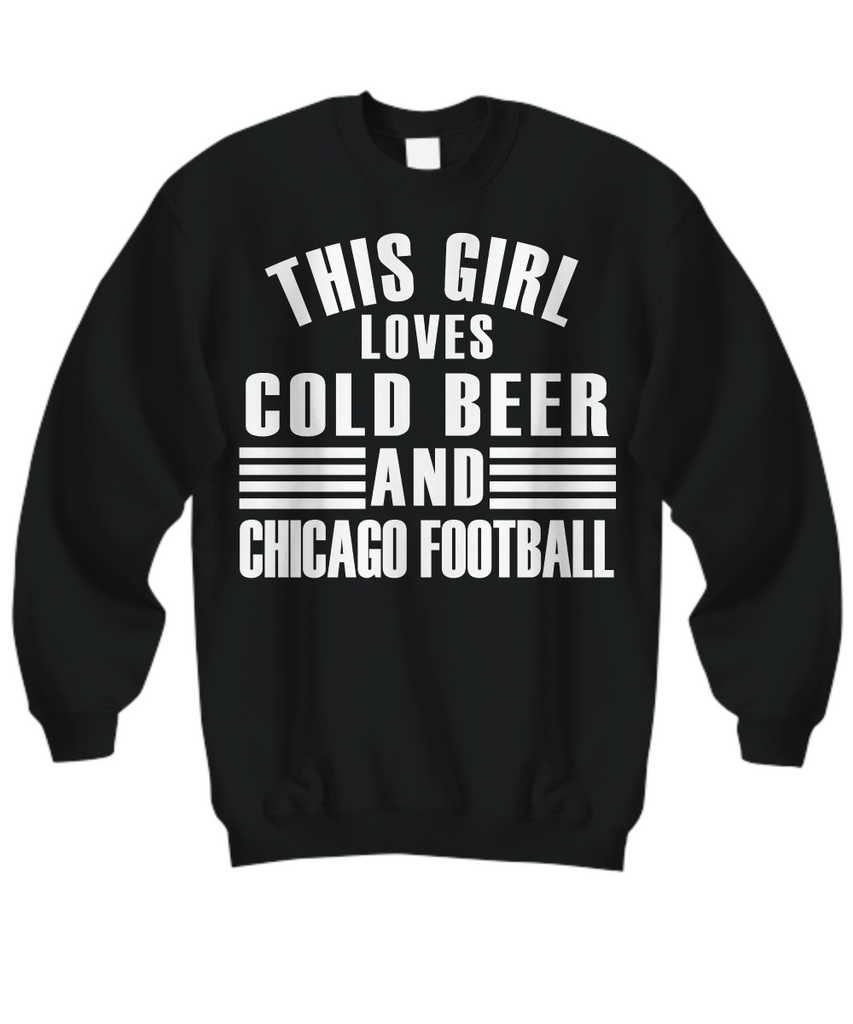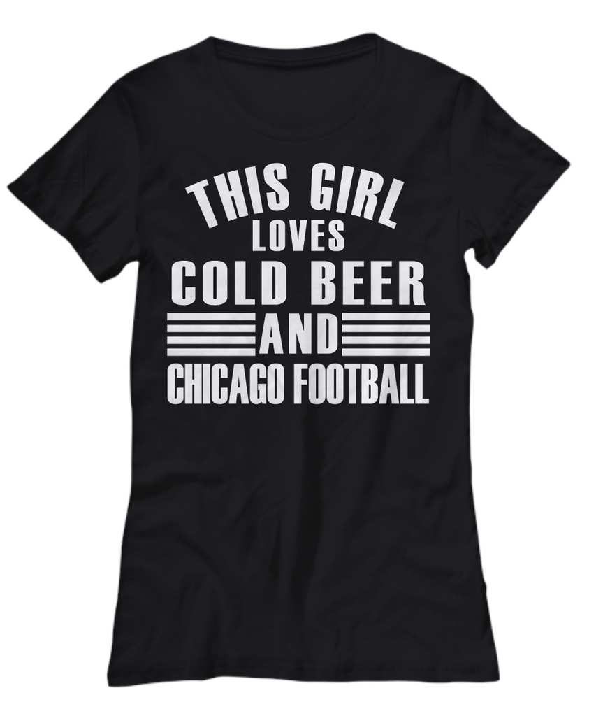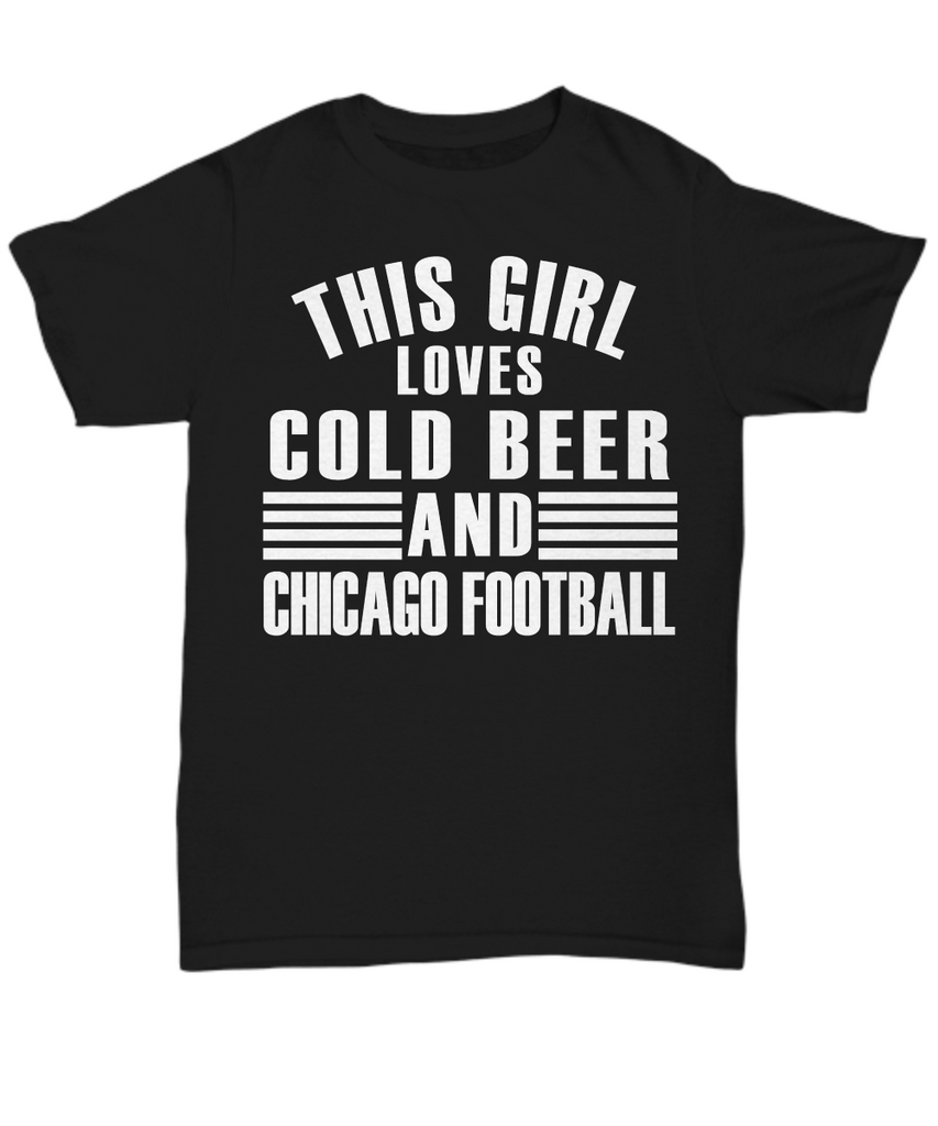 Women and Men Tee Shirt T-Shirt Hoodie Sweatshirt This Girl Loves Cold Beer And Chicago Football