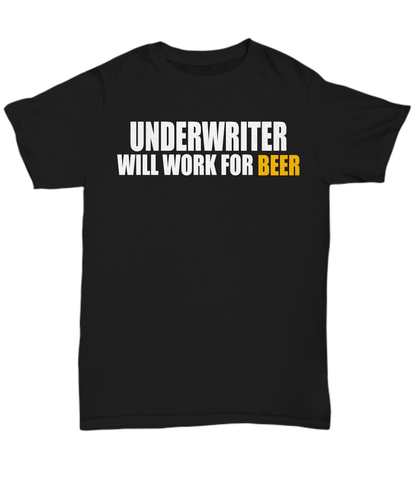 Women and Men Tee Shirt T-Shirt Hoodie Sweatshirt Underwriter Will Work For Beer